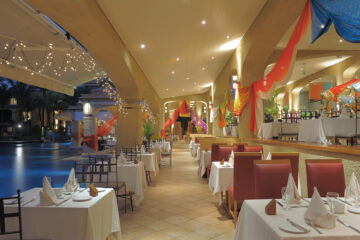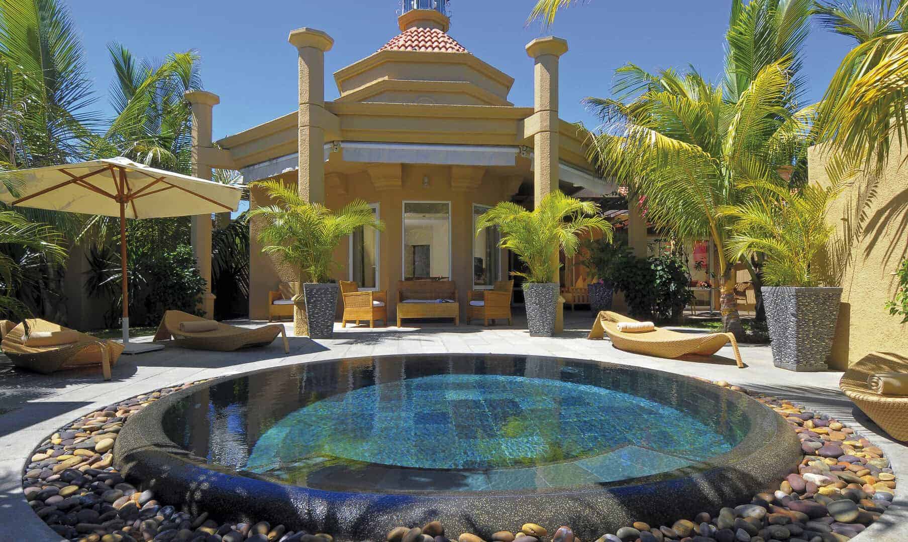 Mauricia also features a Moroccan-themed spa. Evoking a serene oasis, it has cabins designed to resemble nomadic tents, cleverly designed around a shaded pool.