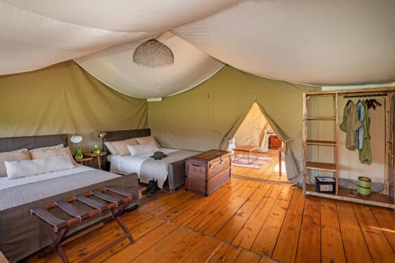 Lemala Ewanjan is carefully posistioned right at the end of a blind valley, so other vehicles will not interrupt your view across the plains during the day, and in the evening, you can enjoy uninterrupted sunsets with no electric lights in sight.