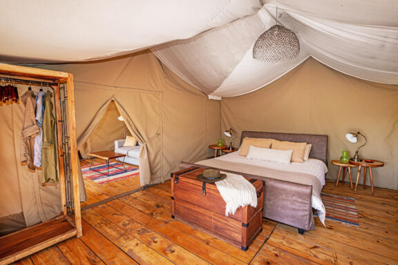 Lemala Ewanjan is carefully posistioned right at the end of a blind valley, so other vehicles will not interrupt your view across the plains during the day, and in the evening, you can enjoy uninterrupted sunsets with no electric lights in sight.