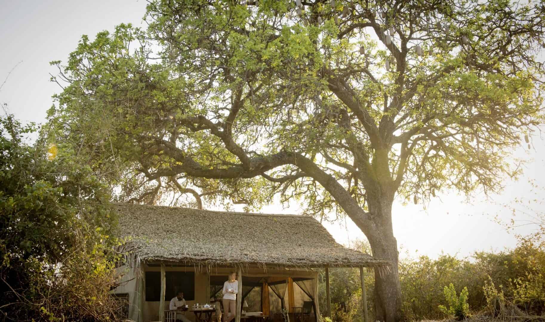 The camp itself has just six airy tents set beneath the boughs of the Sausage Tree (Kigelia Africana) after which it was named.
