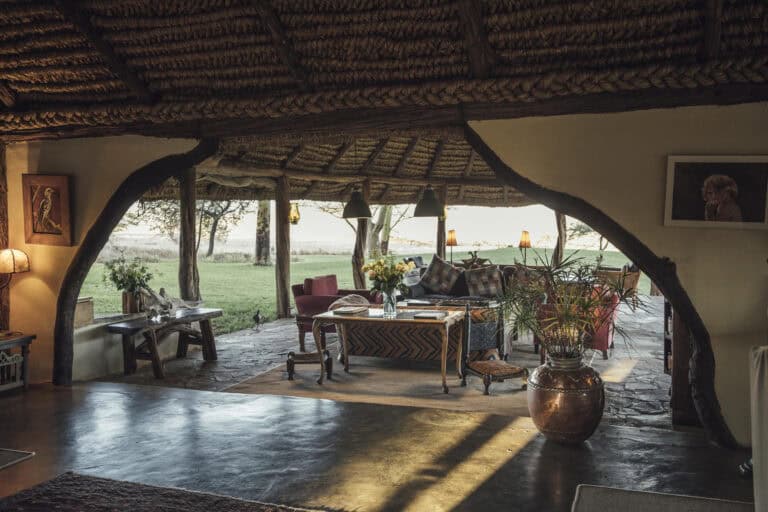 Lewa House, located in the heart of Lewa Wildlife Conservancy, boasts panoramic views of the Kenyan landscape, including Mount Kenya and the Mathews Range.