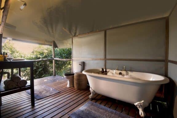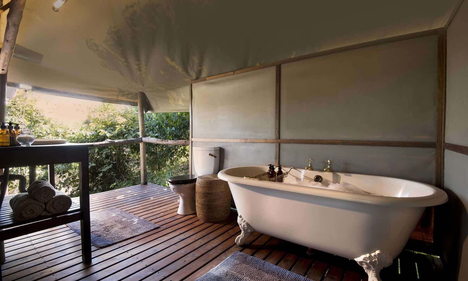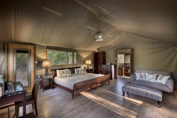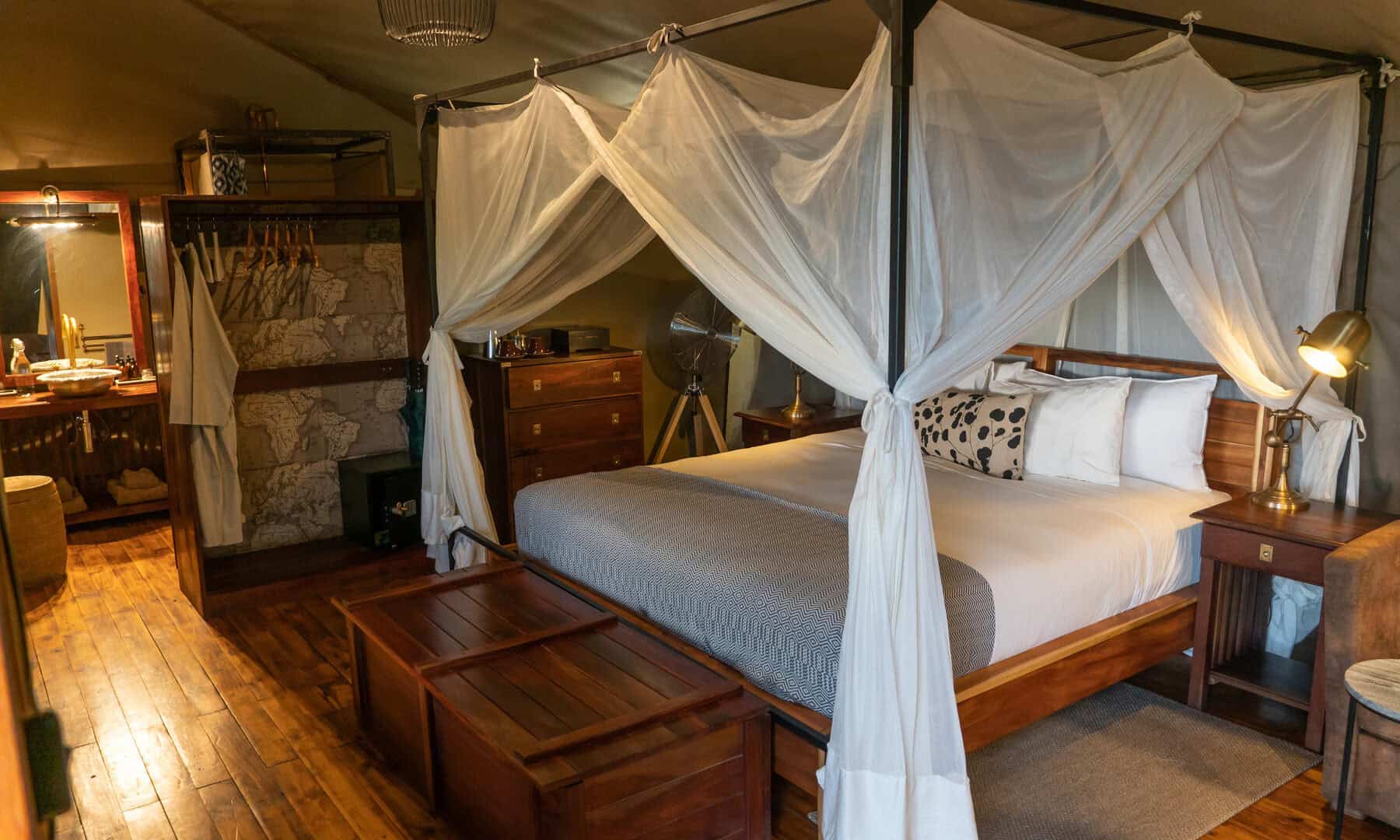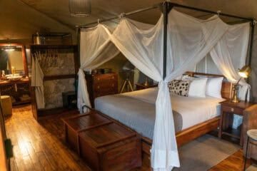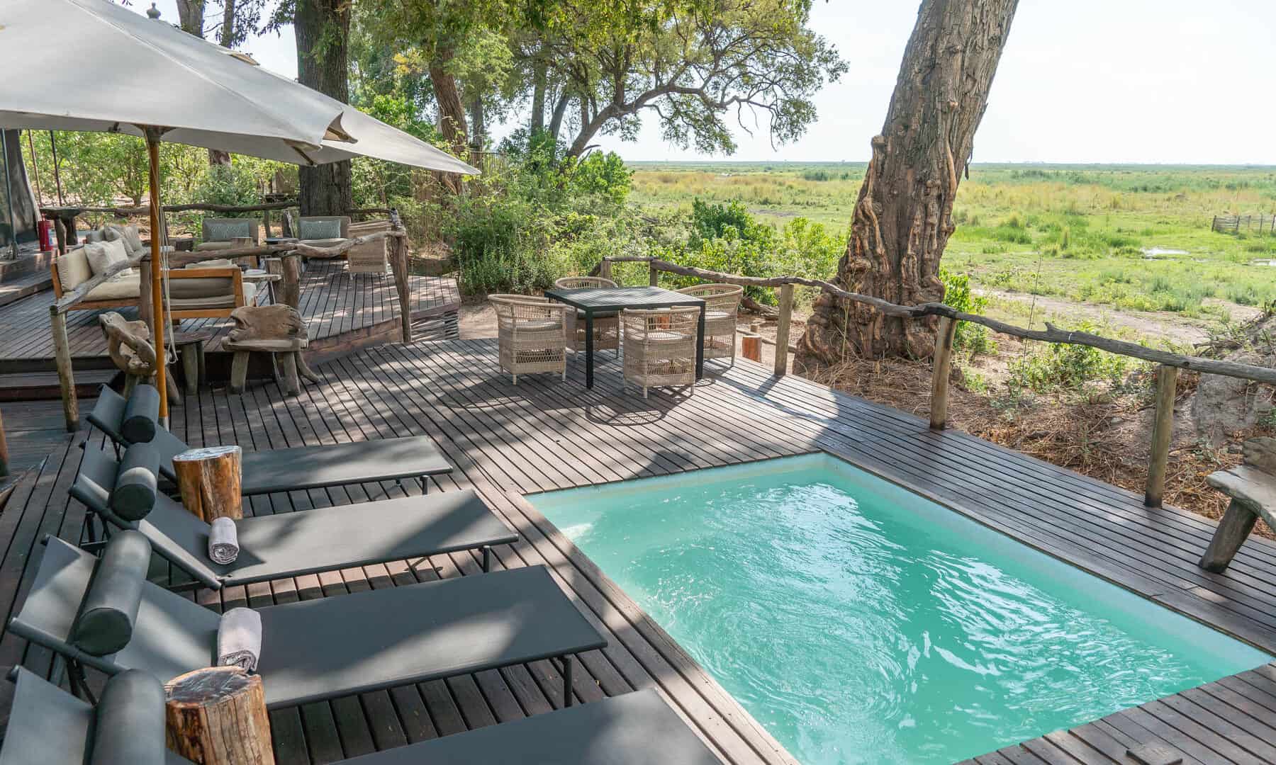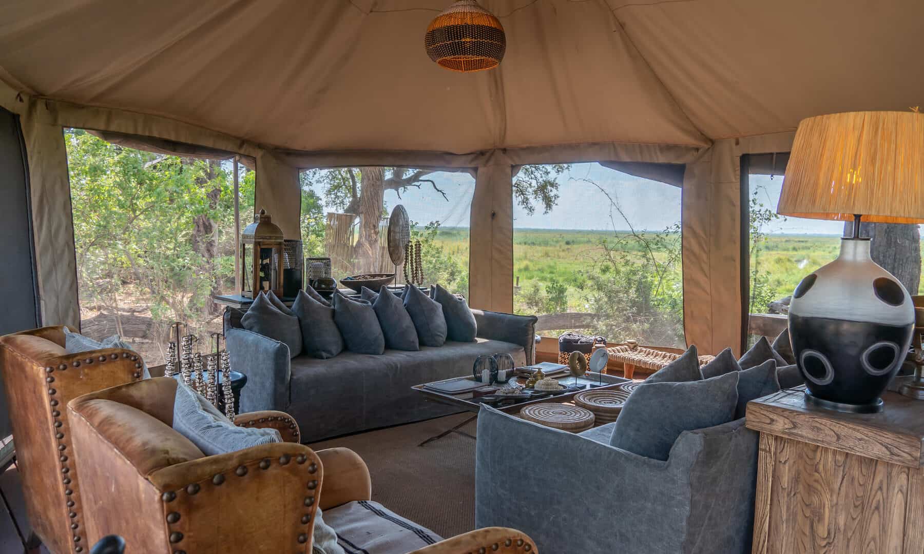 The camp features 4 opulent Meru-styled tents, reminiscent of classic African charm. The family tent boasts interconnected rooms, while the communal space includes an extensive lounge and dining space, a shimmering plunge pool, and an intimate fire circle and boma, crafting the perfect backdrop for forging lasting memories during your Chobe expedition.