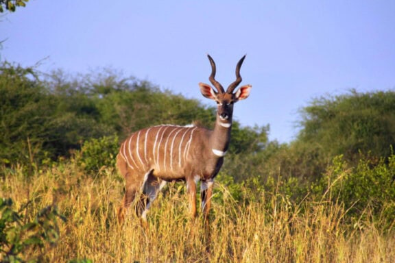 Lions roam the camp and call each other at night; stately elephants march down to Lake Burunge to get a sprinkling of fresh water; cheetahs hunt on the plains facing the lake; leopards, eland and lesser kudu can be seen in the more dense woods in the inner part of the concession.