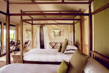 Lying in a 16 000ha Wildlife Management Area adjacent to Tarangire National Park, the camp is surrounded by the characteristic landscape of the Tarangire River with its impressive baobab trees and overlooks the freshwater lake, Lake Burunge.