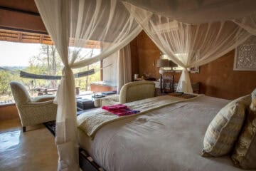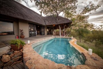 The suites are arranged around a central lounge and pool area, where you’re invited to unwind between game drives. Each suite is spacious and private, combining natural textures with comfort and understated style. Large decks overlook the reserve, offering uninterrupted views and a sense of calm that’s central to the experience here.