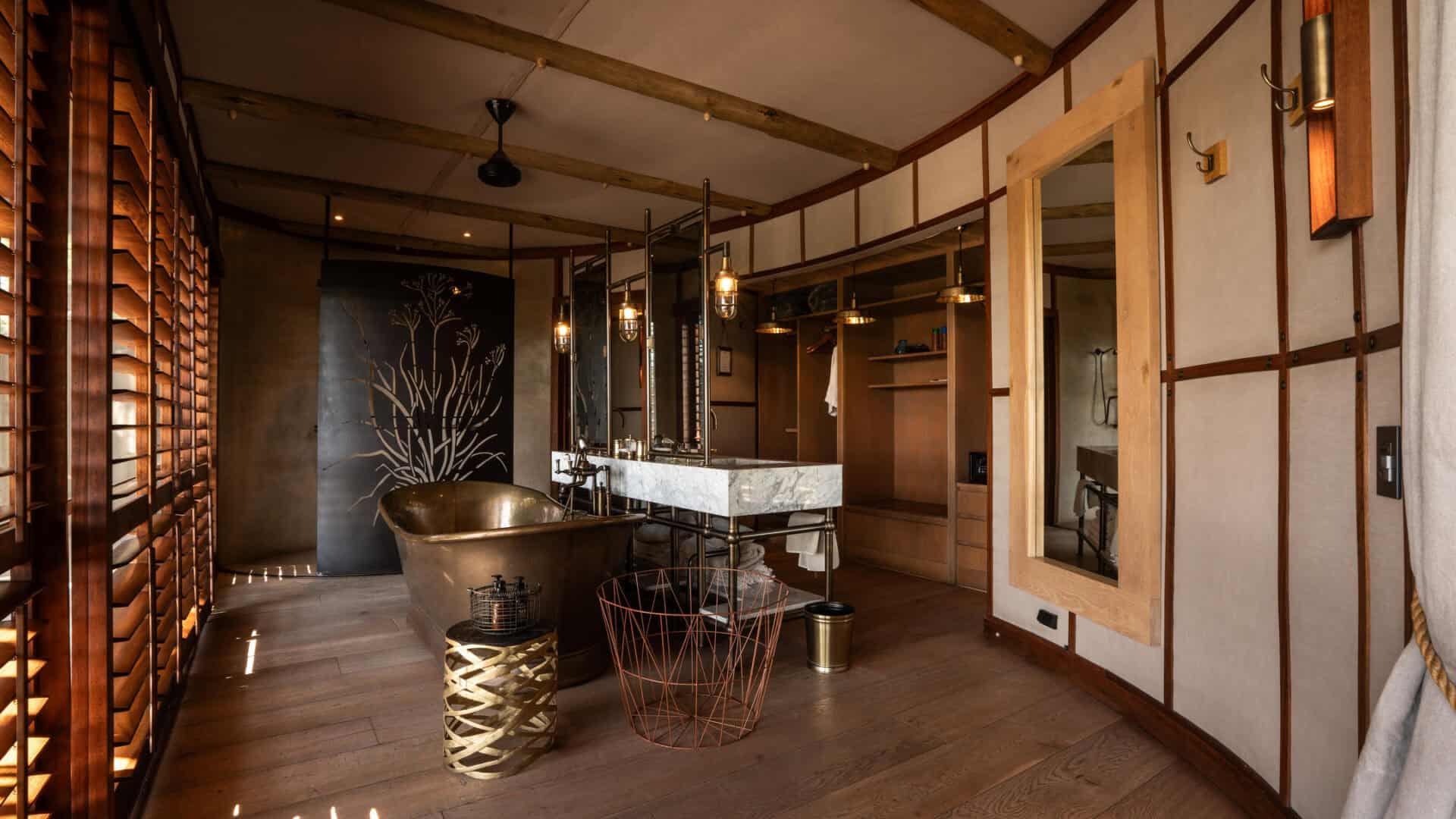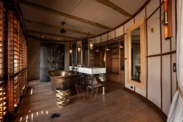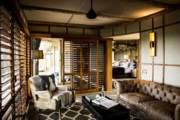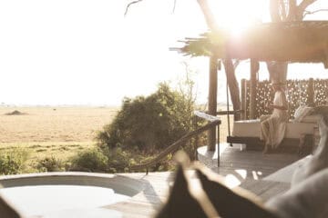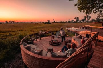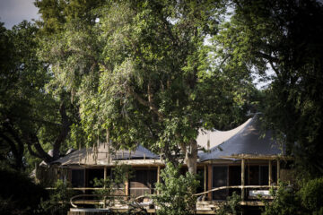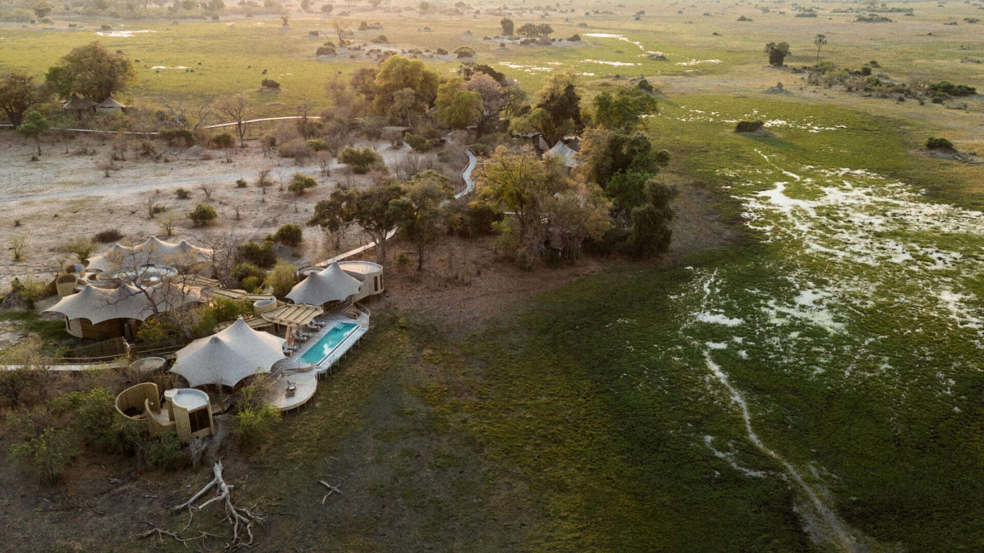 Each tented room is appointed with en-suite facilities, an outdoor shower, and a private sala overlooking the surrounding floodplains. The camp features its own dining area, kitchen, lounge, and plunge pool, allowing you to enjoy a secluded environment separate from the larger Wilderness Mombo.