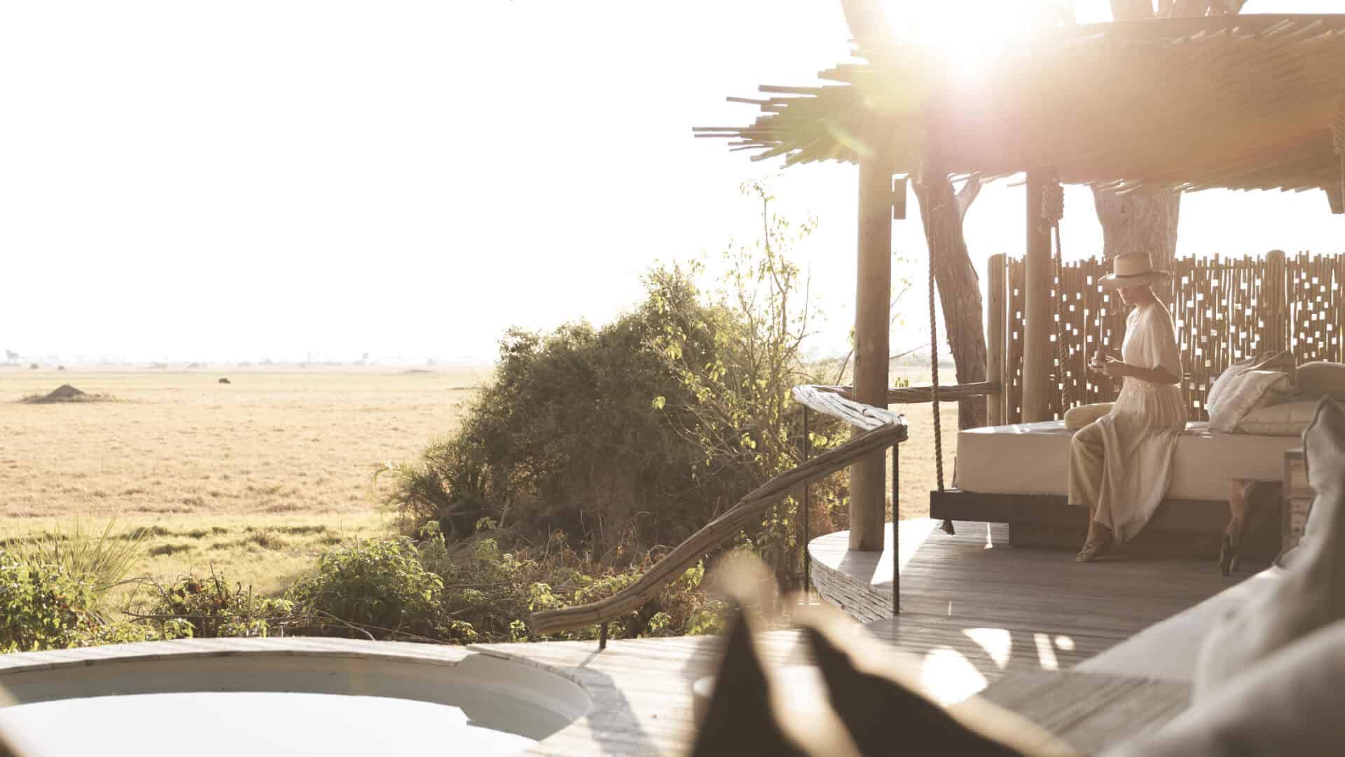 Each tented room is appointed with en-suite facilities, an outdoor shower, and a private sala overlooking the surrounding floodplains. The camp features its own dining area, kitchen, lounge, and plunge pool, allowing you to enjoy a secluded environment separate from the larger Wilderness Mombo.