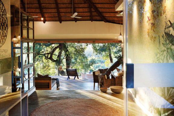 Set amongst the dappled shade of 500-year-old ebony trees Pioneer Camp’s three interconnected luxury suites and generous bush homestead make this the most secluded and flexible of the Londolozi camps. The private suites have superb river views and are perfect for honeymoons and secluded getaways. The camp can easily be converted into a bush homestead for private multi-generational family groups of between 6 and 12 people.