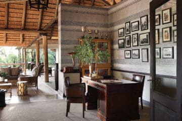 Londolozi re-uses re-engineers and restores the original feeling of an African Safari camp. Pioneer camp carries all the elements of authentic bushveld living, clean lines, simple timeless and classic elegance with a touch of crystal. A sense of history pervades the camp through faithfully restored memorabilia, photographs, leather and a bespoke one-of-a-kind wallpaper that lines the Pioneer Camp bar and tells a story of the lives of safari pioneers from just under a century ago.