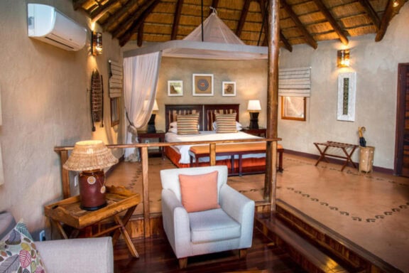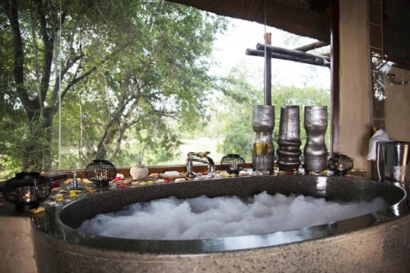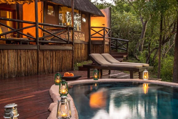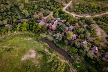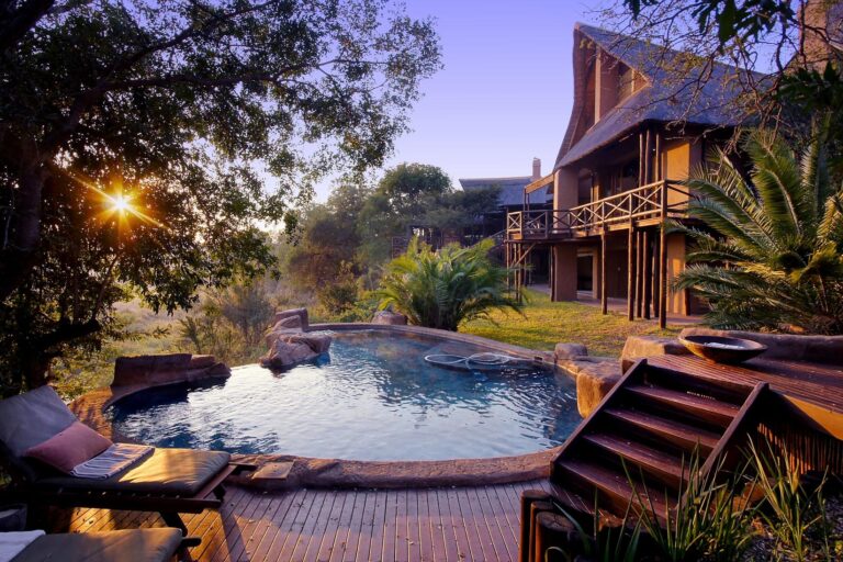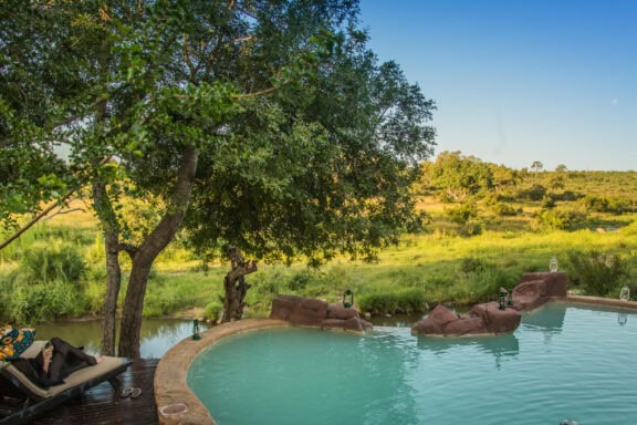Lukimbi Safari Lodge is a stunning luxury safari lodge situated in the easily accessible southern portion of the Kruger National Park, South Africa. The lodge boasts the most beautiful view along the bank of the Lwakahle River. Accommodation is provided in Classic Suites and Premier Suites. Every room and living space was designed around the view, while latticed ceilings filtering the sun’s dappled light, casting ambient shifting shadows as the sun moves across the sky. The pool area is a place of serenity, right on the bank of the river. It includes multi-leveled relaxation decks as well as a children’s paddle pool.