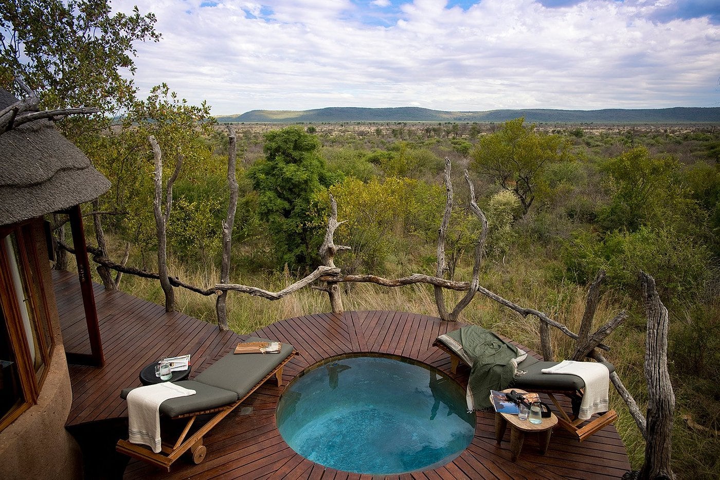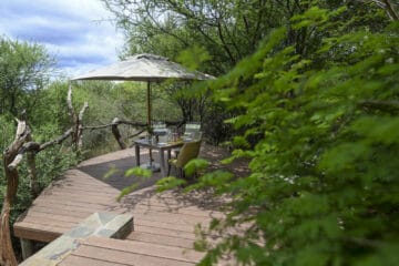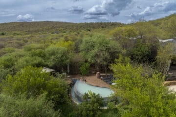 Each suite at Madikwe Kopano Lodge features a private plunge pool and a personal “Gym-in-a-Basket” for staying active between game drives. You can enjoy the surrounding wilderness from the comfort of the outdoor dining area or retreat to the indoor dining room when the evening air turns cool.