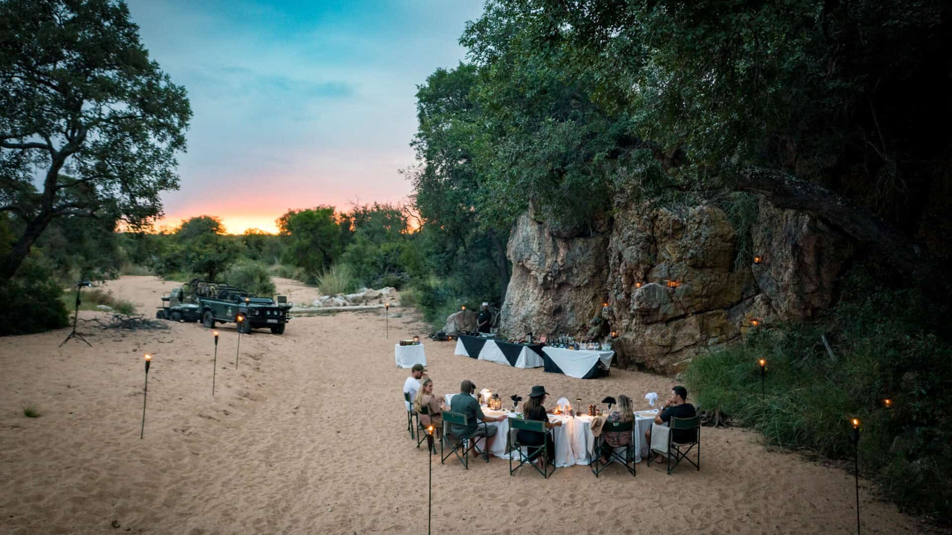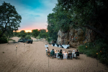 Enjoy dinner in the boma, set high above the leopard river and the plains beyond, it is a stunning location for candlelit dinners, stargazing and warm campfire story-swapping.