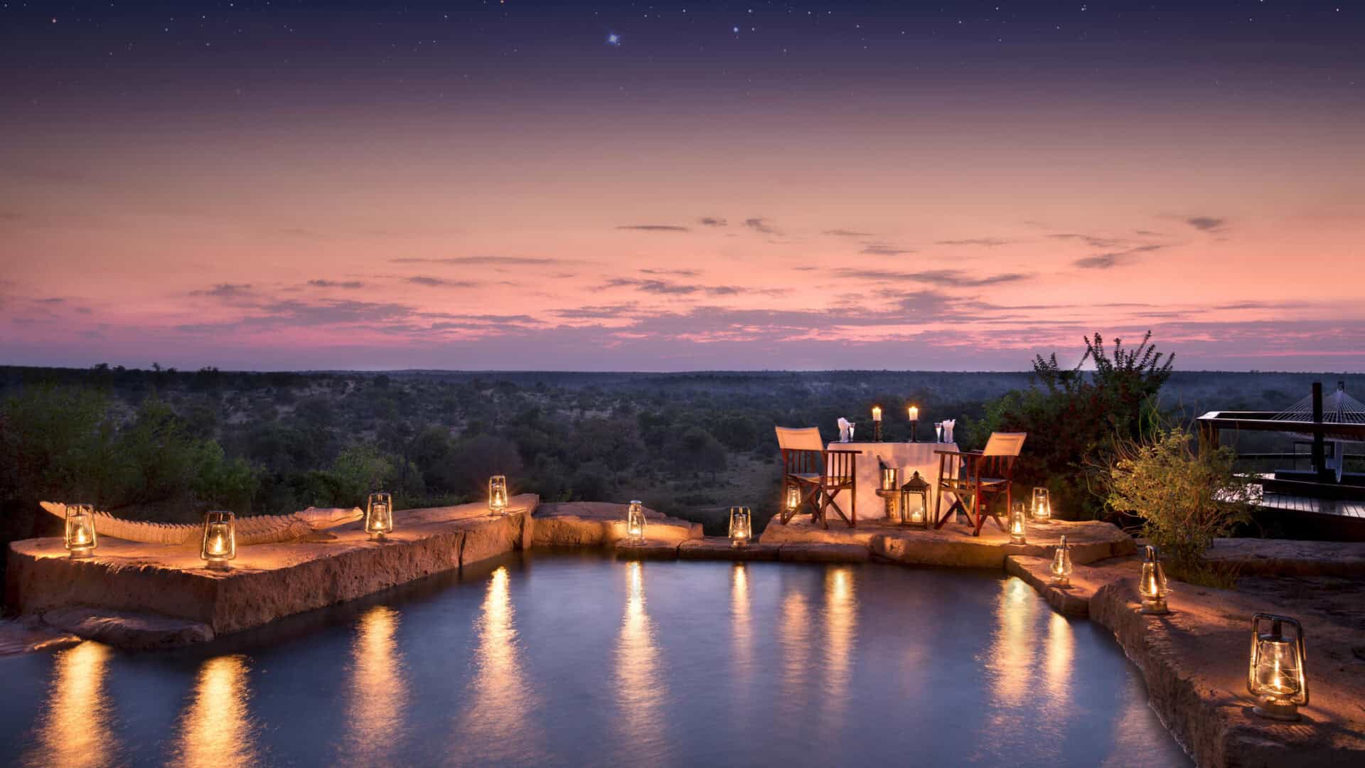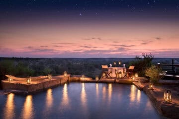 Set in the heart of the Klaserie Private Nature Reserve within the Greater Kruger National Park, Makumu Private Game Lodge offers breathtaking panoramic views from its hilltop location. True to its name, which means “endless views” in Xitsonga, this exclusive eco-friendly lodge features six suites across three themed villas, accommodating a maximum of twelve guests.