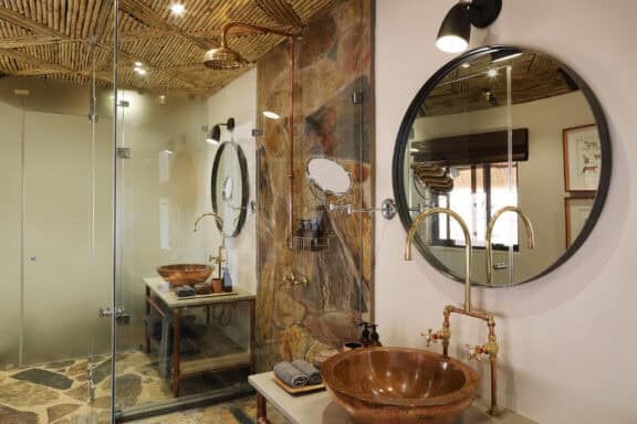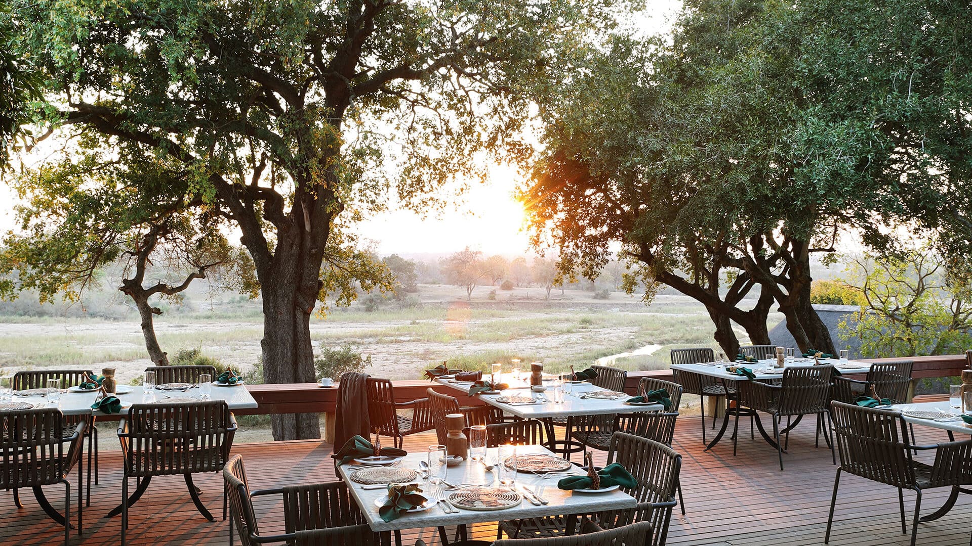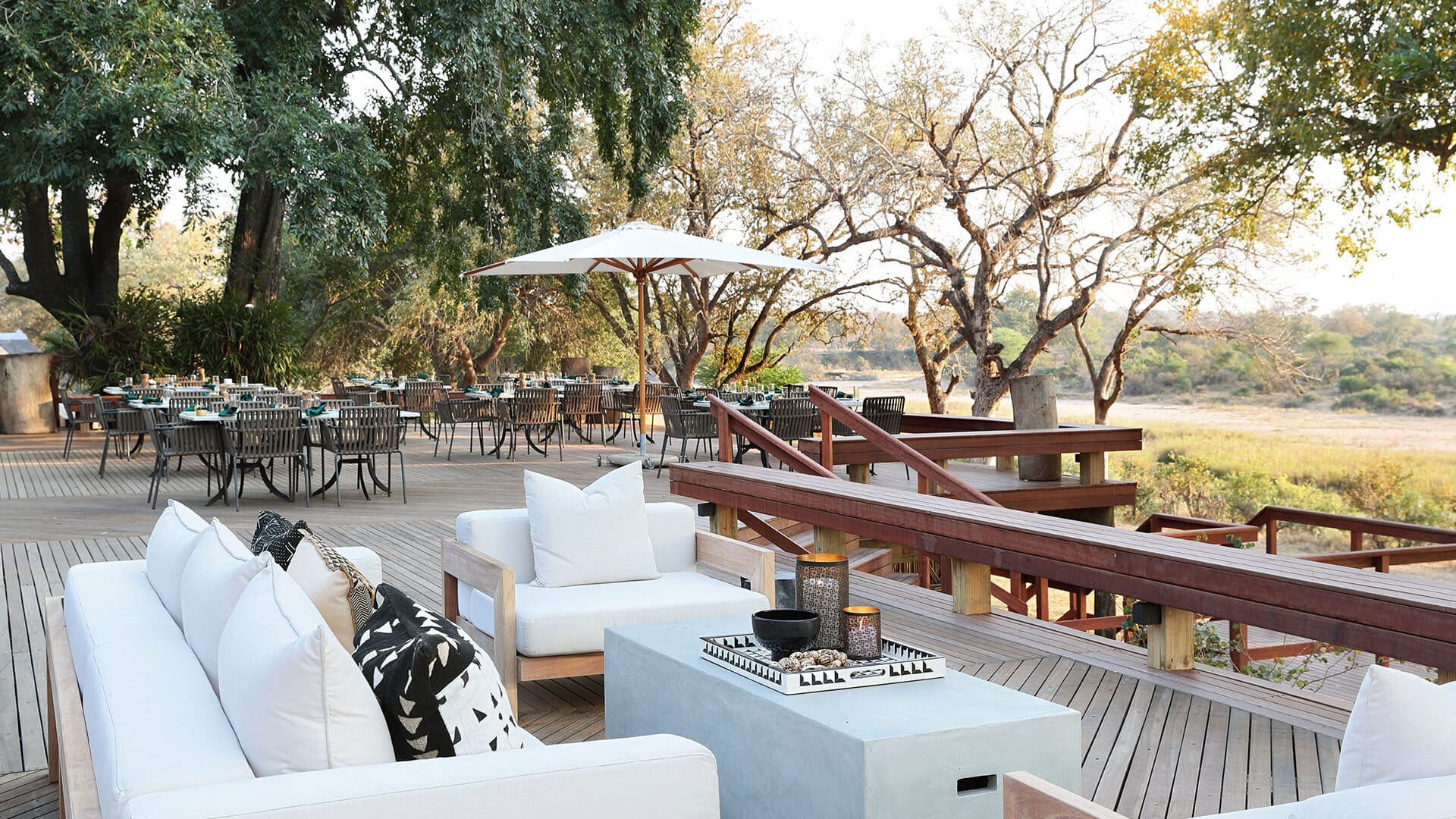 Every aspect of Mala Mala Camp is designed to appreciate and enjoy the view of the surrounding nature. Massive trees and rolling green lawns are filled with birdsong, with the occasional antelope or elephant seeking the succulence of greenery.