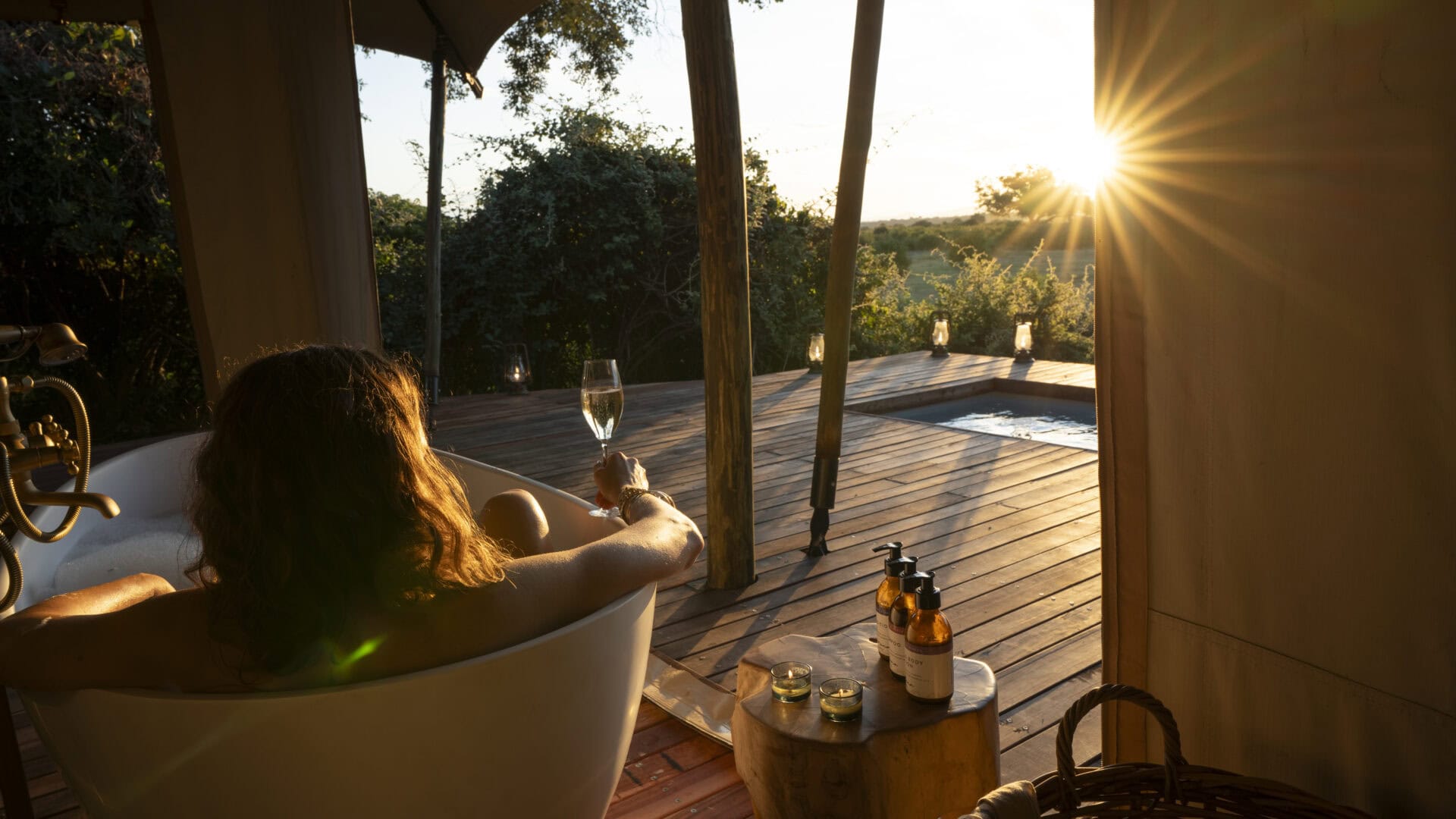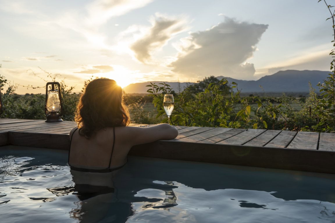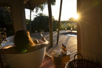 The camp features six spacious tented suites, including a family unit and a wheelchair-accessible option. Each suite is thoughtfully spaced for privacy and includes a generous deck and private plunge pool—ideal for slow mornings or evenings spent watching the bush come to life. A central lounge deck, firepit, and main pool add to the relaxed rhythm of life at camp.