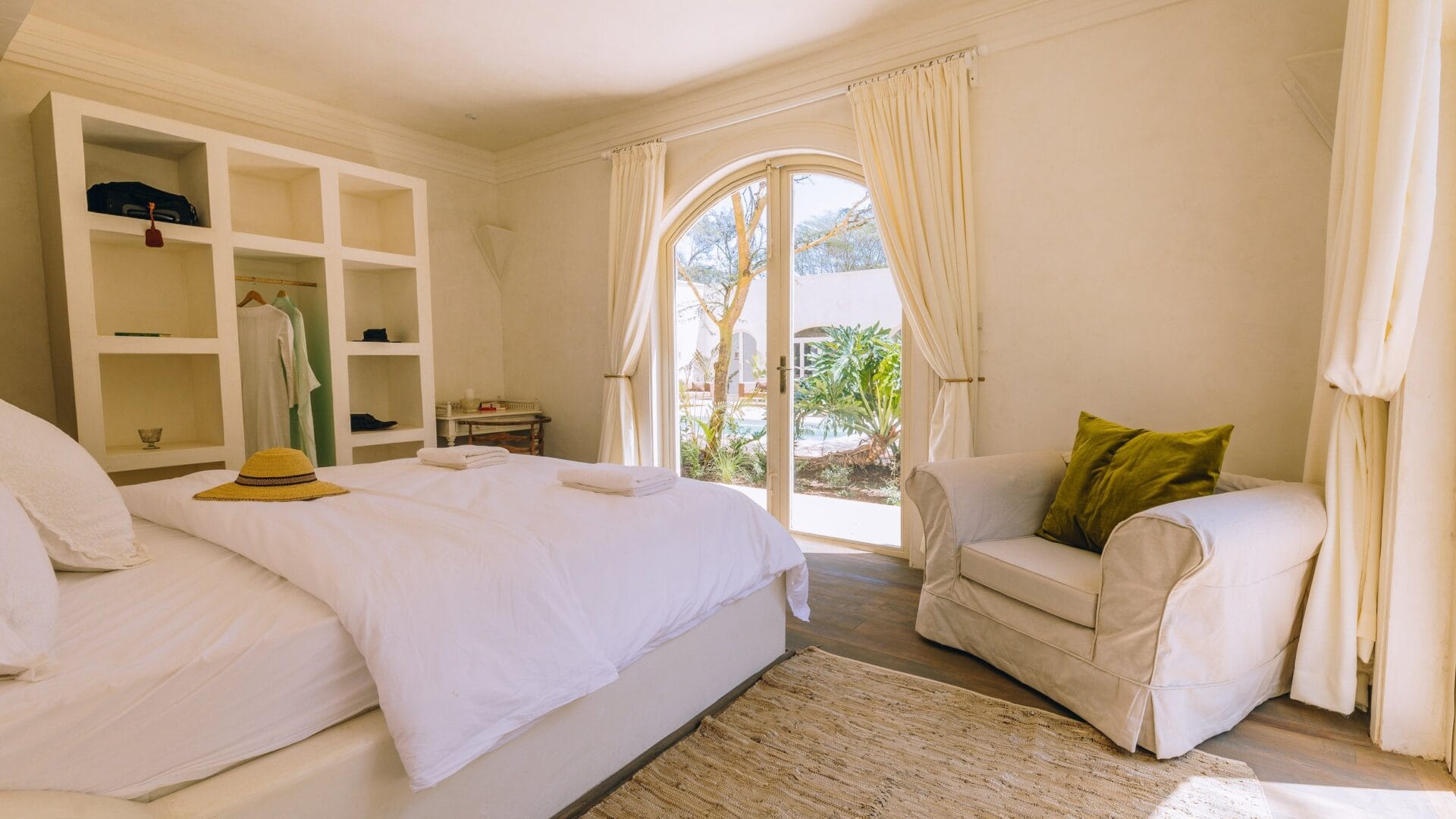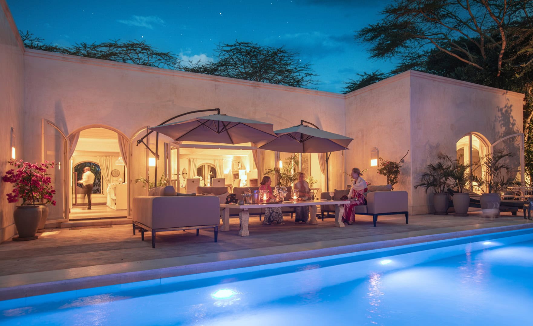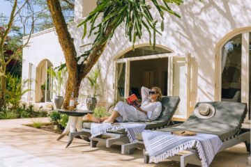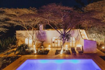 Ideal as a starting point for safaris, Manzili House consists of two distinct units: the larger 4-bedroom main house and the cozy 2-bedroom ‘Manzili Ndoto’. Both overlook a lush tropical courtyard with a swimming pool, blending work and leisure in a peaceful setting.