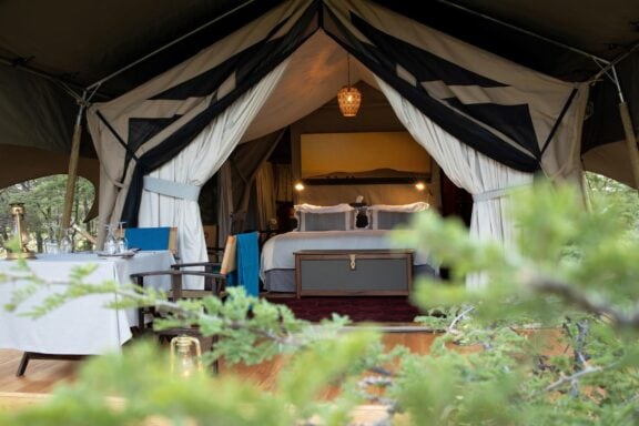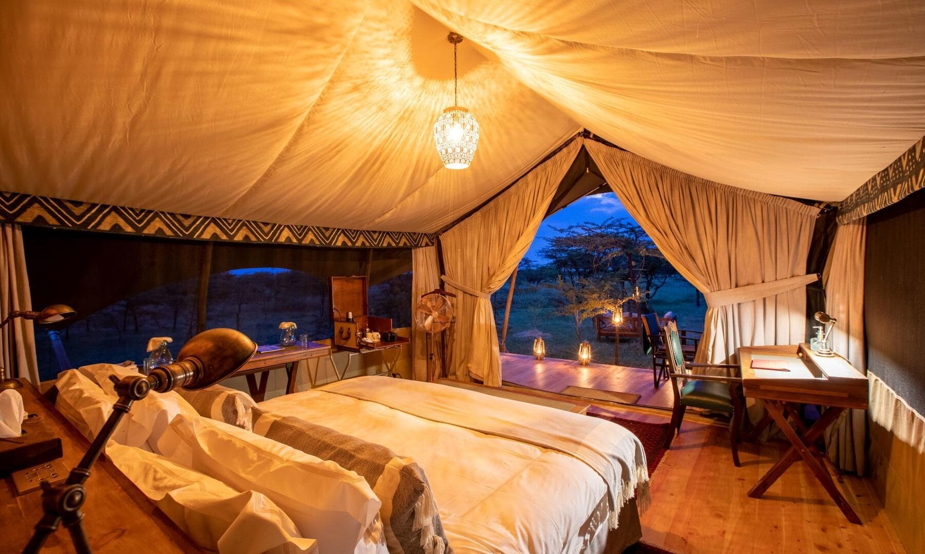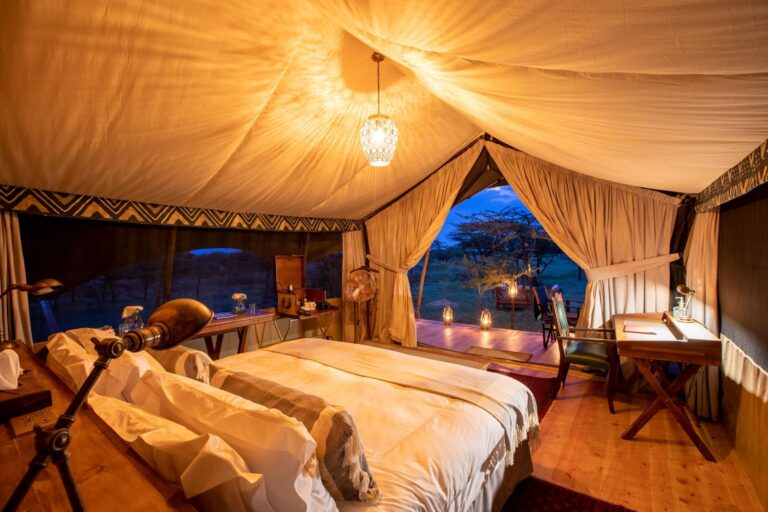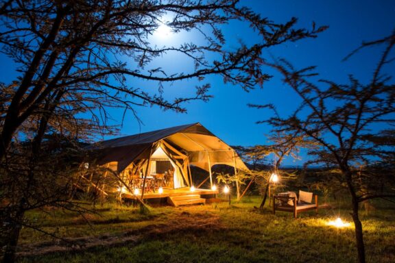The camp is locally famous for its leopard residents wandering nearby and is positioned to take advantage of two migrations – the famous annual Serengeti migration and the green season migration from Loita Plains, an additional 50,000 wildebeest and over 100,000 zebras vying for grazing rights.