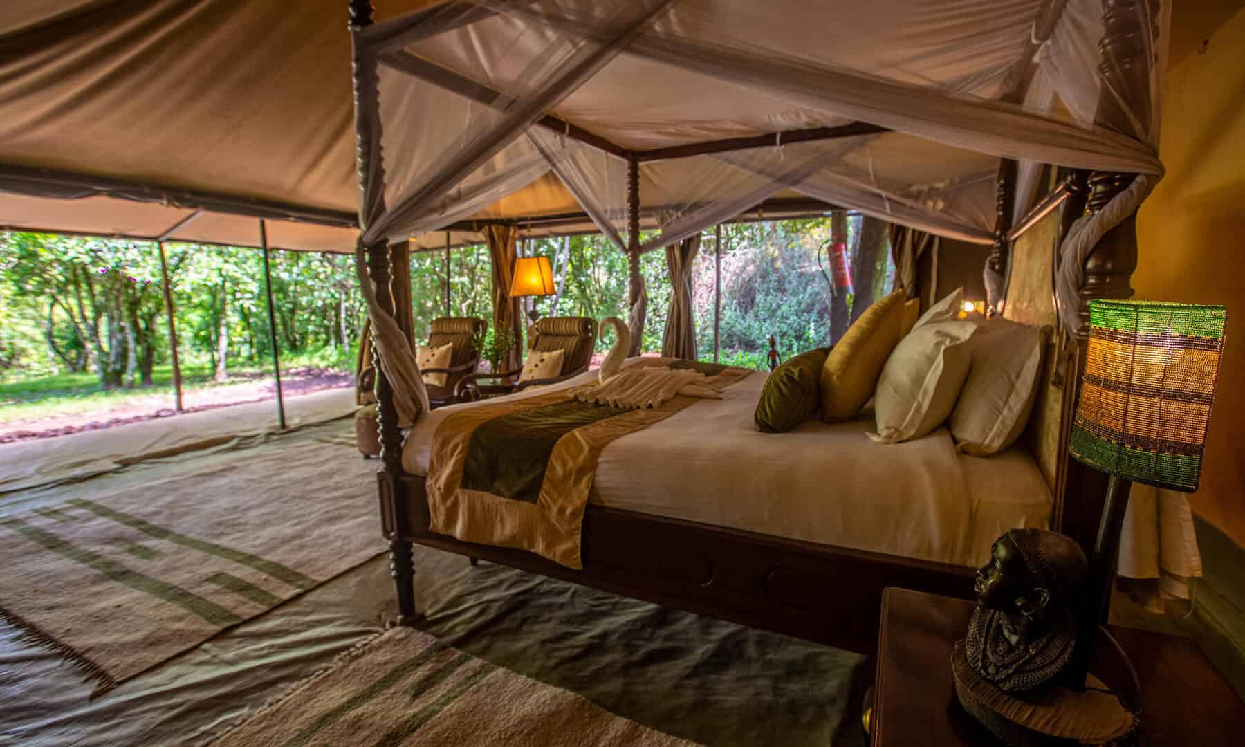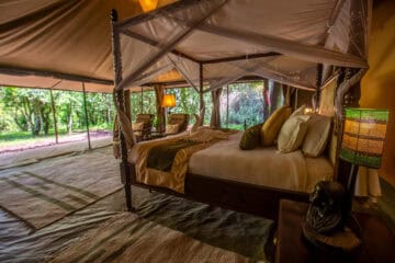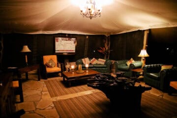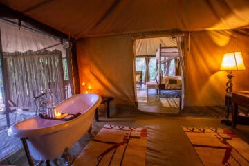 The 12 Spacious well appointed tents are en-suite and decorated with an amazing fusion of modern African decor with old world charm.