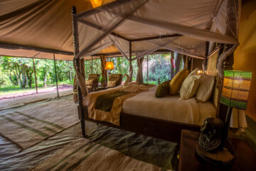 In a spectacular location in the heart of the Masai Mara, lies this small, intimate, luxurious and elegant Camp. Well hidden in the beautiful panorama of ravine forest, Mara Ngenche Safari Camp offers Superb views over the confluence of the Mara and Talek Rivers.