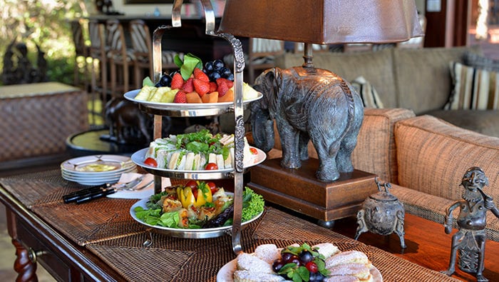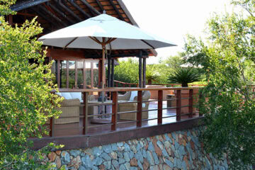 The exclusive lodge accommodates just 10 guests in five individually designed, air-conditioned luxury suites. Each spacious suite boasts hand-crafted furnishings, a luxurious en-suite bathroom with a secluded open-air shower, fireplace, tea/coffee facilities, and a private deck.