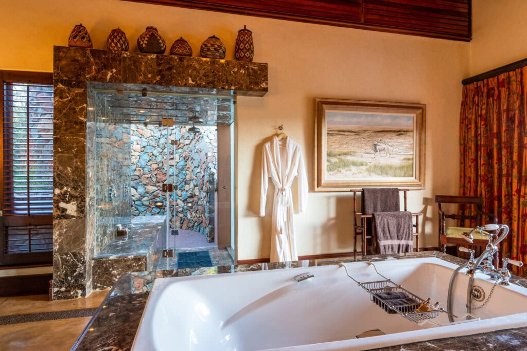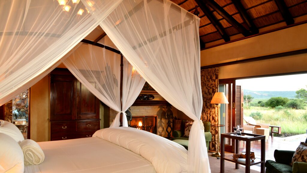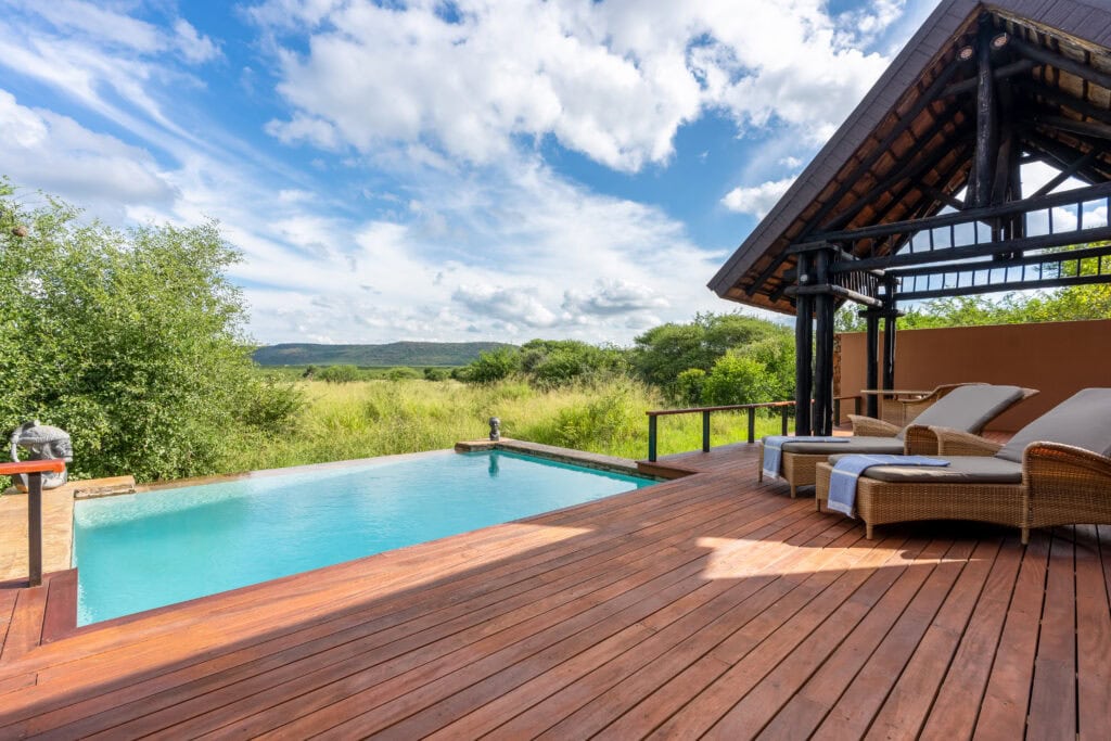 Located in the Madikwe Game Reserve, Mateya Safari Lodge offers a luxury safari experience. This malaria-free reserve, situated in South Africa’s northwest, features open grasslands punctuated by rocky outcrops and majestic mountains.