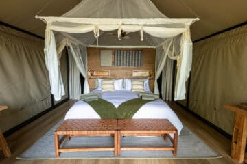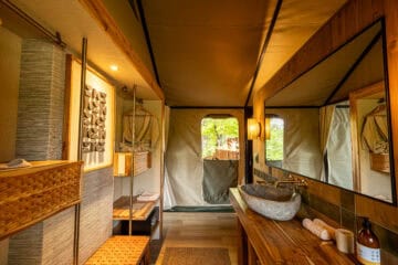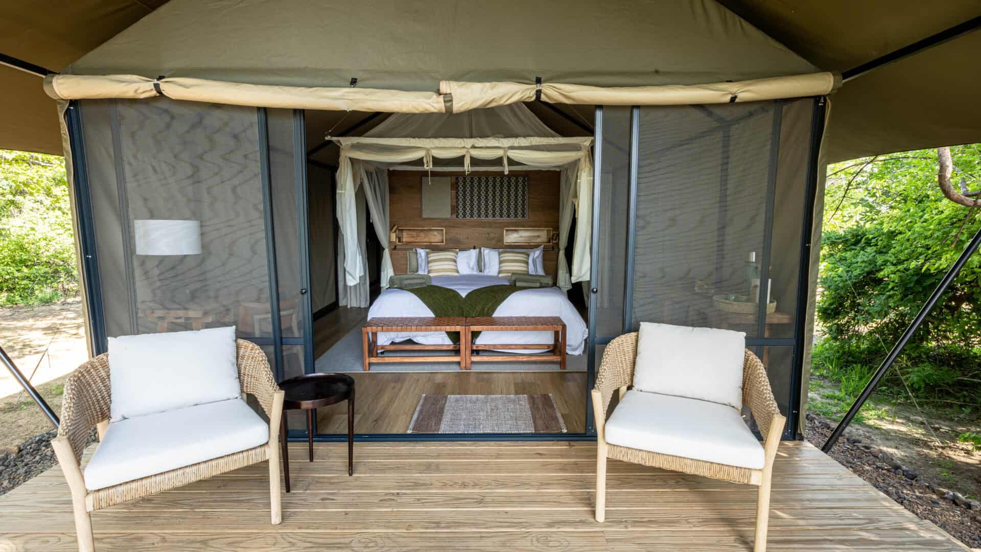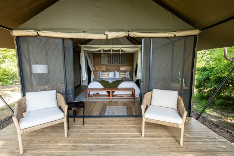 As a small and intimate bush camp, the property features four luxury river-view tented suites that provide a private and restorative atmosphere. Each spacious tent includes an en-suite indoor bathroom and a private deck, where you can soak in your own plunge pool while listening to the grunting of hippos.