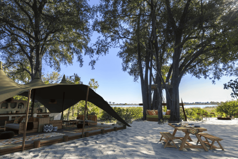 A highlight is the natural swimming pool that combines the Okavango’s natural filtration systems with cutting-edge environmental water treatment technology. The camp’s design emphasises both luxury and environmental consciousness, creating an intimate wilderness experience where you can observe diverse wildlife, including a resident coalition of four male lions, sable antelope, and elephants.