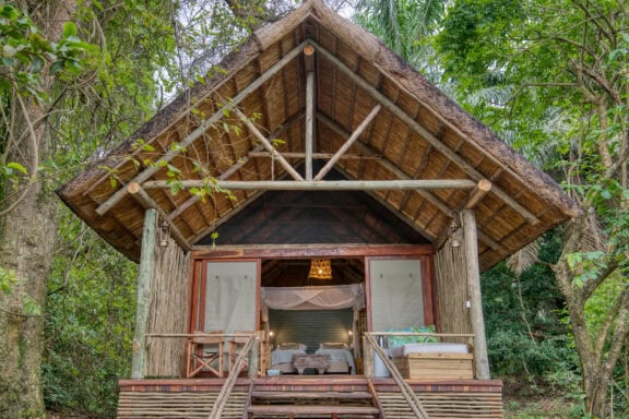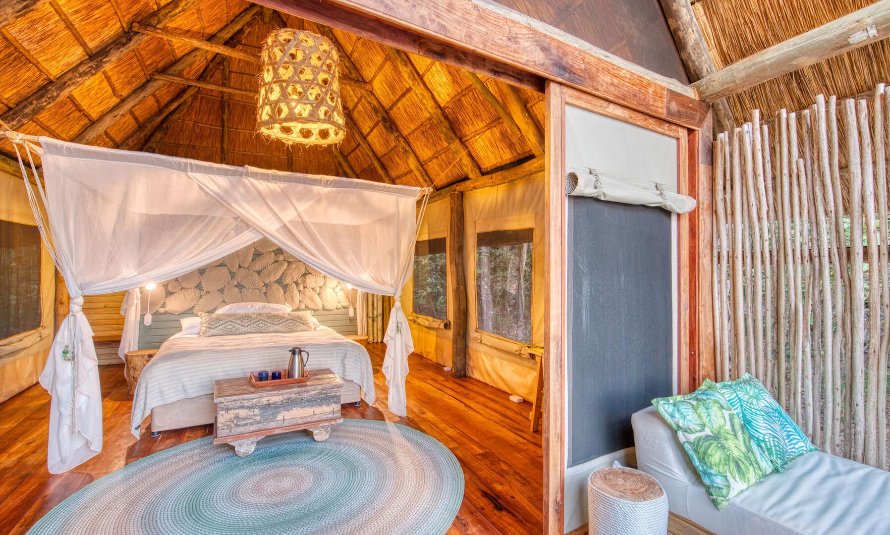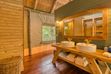 Each Tented accommodation is on a raised platform, with electricity and hot and cold running water. The tents provide self-contained mosquito nets around the beds and bathroom.