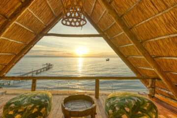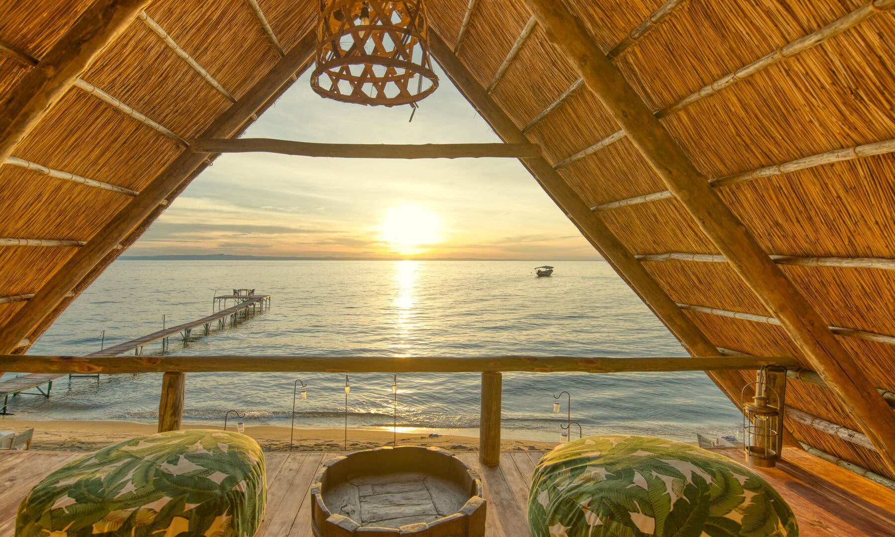 Mbali Mbali Mahale sits on a stretch of sheltered beach, with the backdrop formed by the dramatic Mahale Mountain range, and the crystal clear waters of Lake Tanganyika in the foreground.
