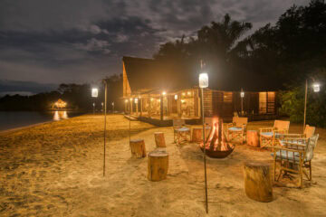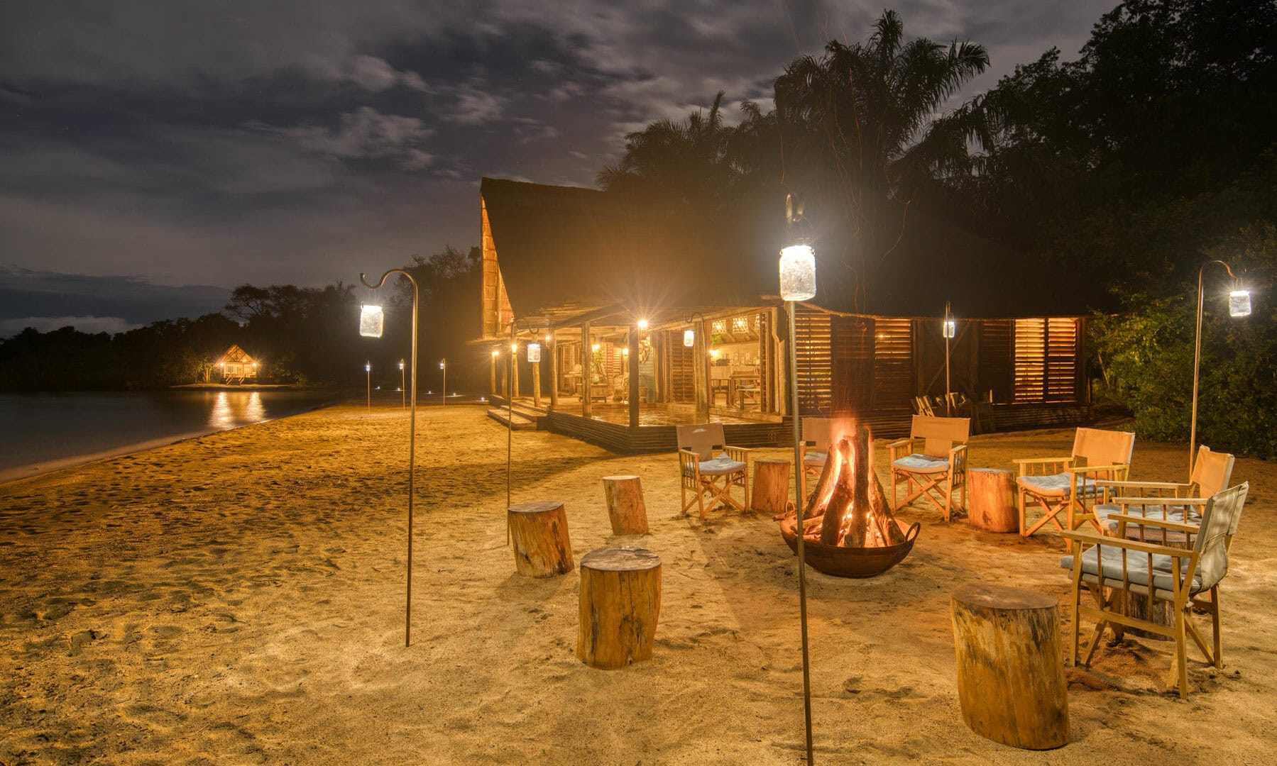 The primary activity in the park is chimpanzee trekking, carefully monitored so as to reduce human impact on the famous habituated M-Group chimps. Take a gentle boat safari on the lake, or opt for a fishing excursion, where you may encounter crocodile, hippo and otter as well as an abundance of birdlife. Kayaks are available for exploring the lake at your leisure, or you may choose to simply stretch out under one of the salas on the beach, while the gentle lapping of the lake lulls you into an afternoon siesta.