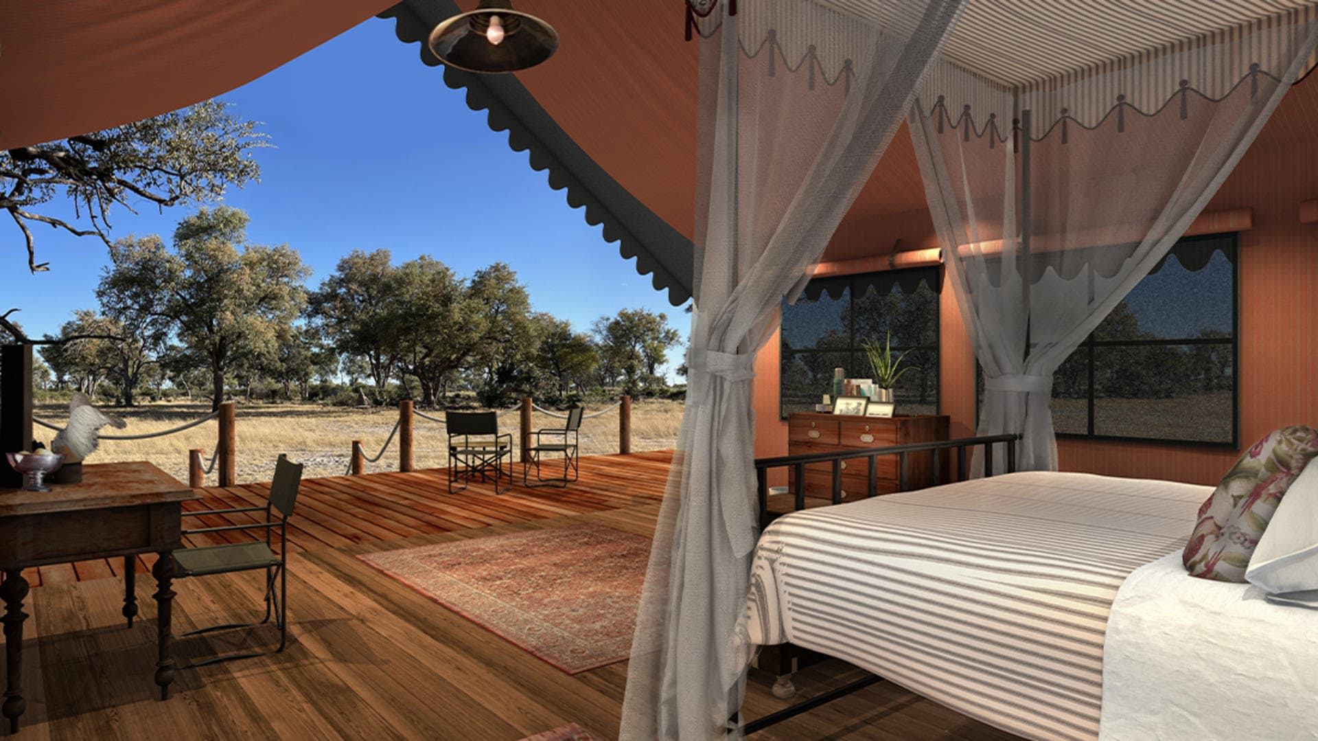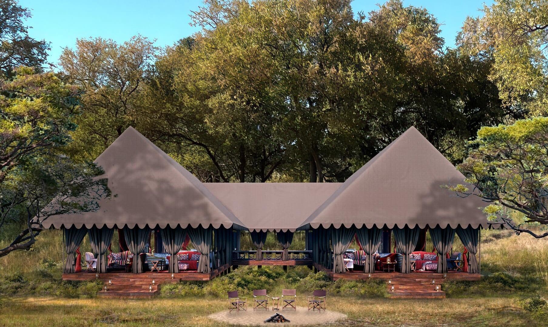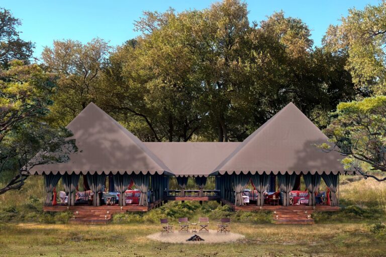 Located in the private NG12 Concession of Botswana’s Northern Okavango Delta, Mbamba Camp offers a year-round wildlife spectacle. Opening in April 2025, this Ralph Bousfield camp blends classic safari style with exceptional guided experiences. The camp features 12 air-conditioned canvas tents, including family units, shaded by leadwood trees.