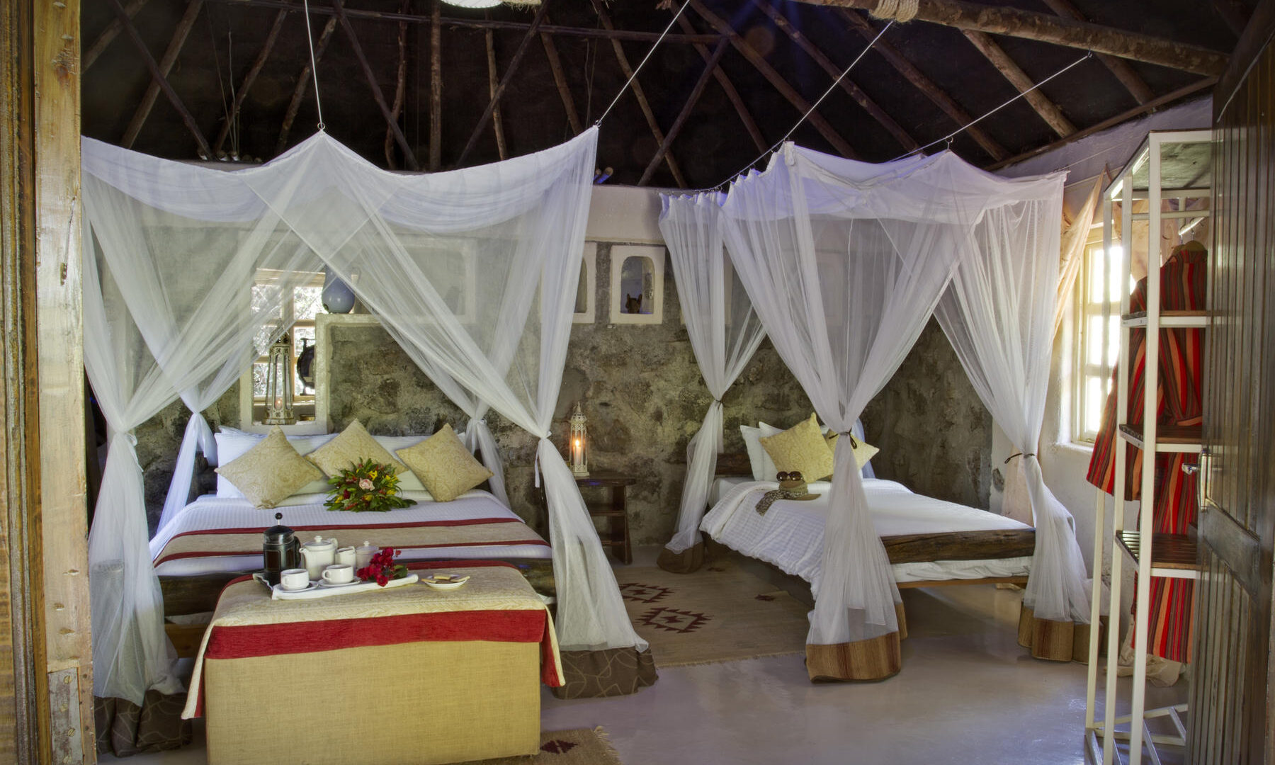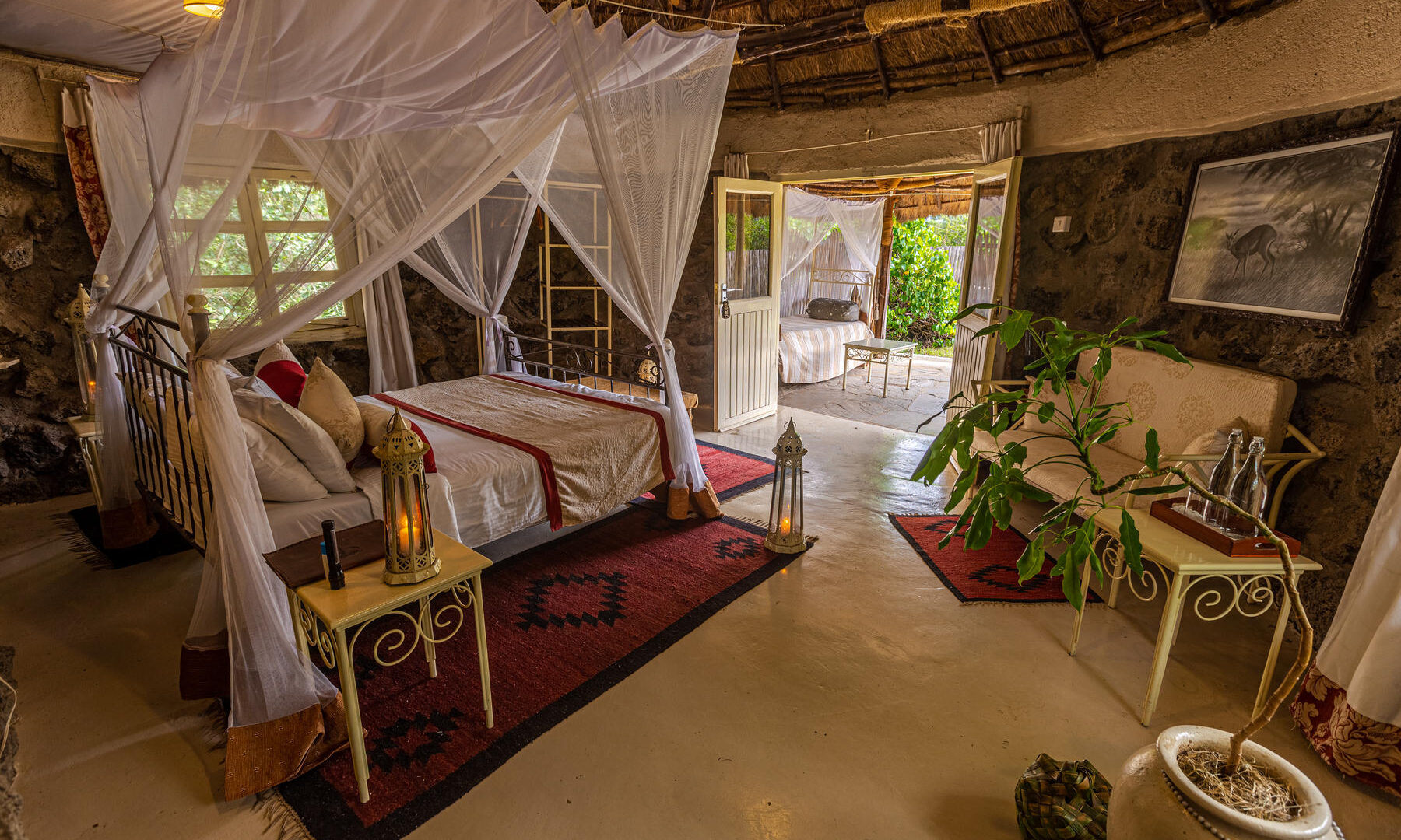 10 Rustic lava-stone cottages with thatched roofs are surrounded by euphorbia candelabra, yellow barked acacia and other indigenous trees. Mbweha Camp is only a few hours from Nairobi, yet feels right away from it all with its relaxed atmosphere. Being situated outside a National Park allows many activities, including walking, mountain biking and night game drives. Guests can also enjoy day trips into Nakuru National Park with the option of a gourmet bush lunch with spectacular views of the Lake and the National Park.