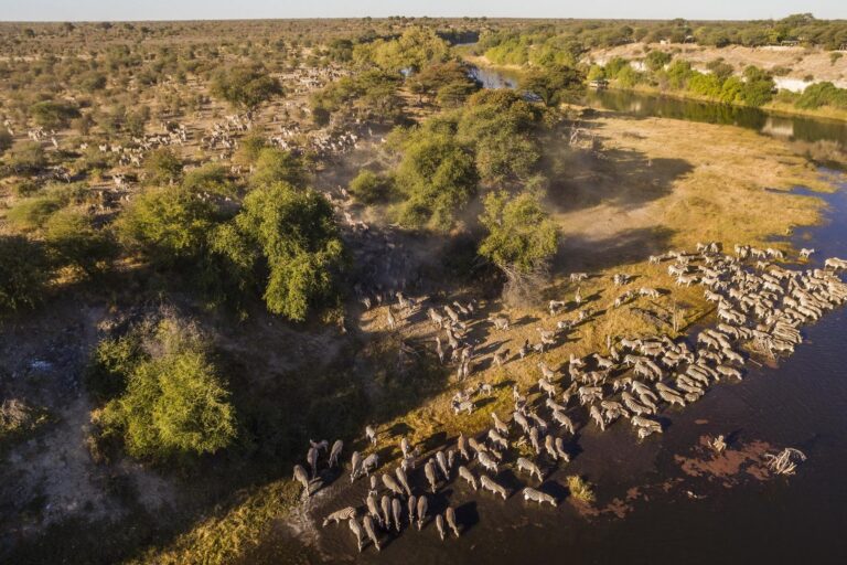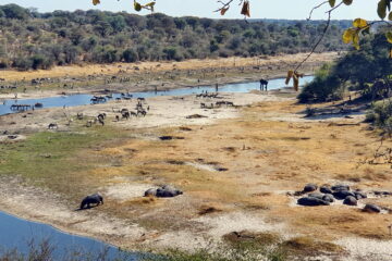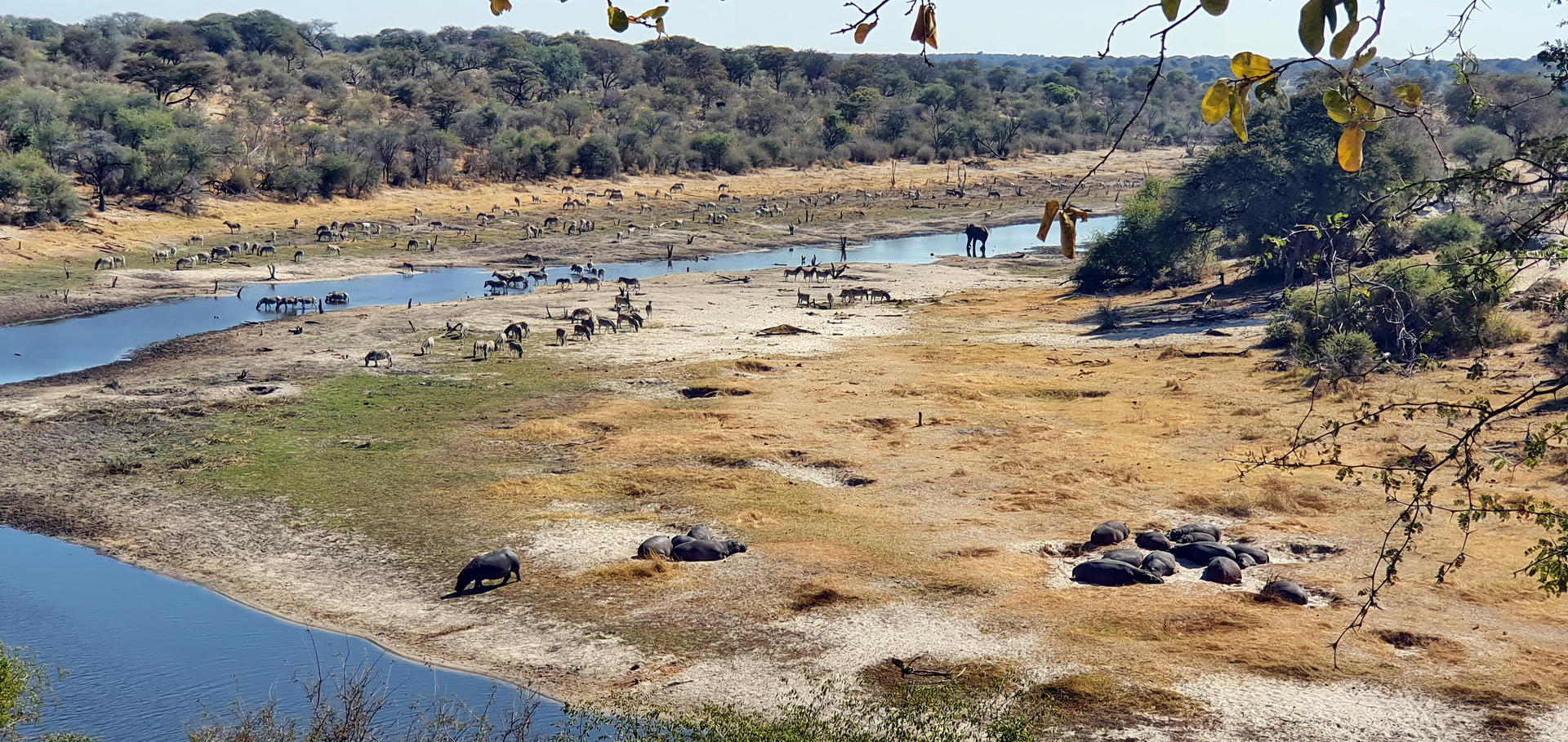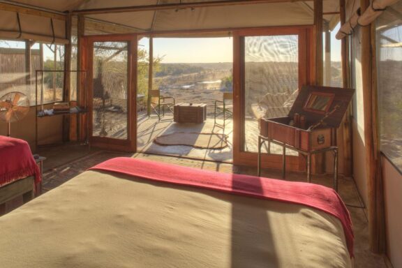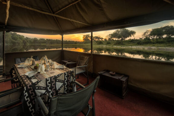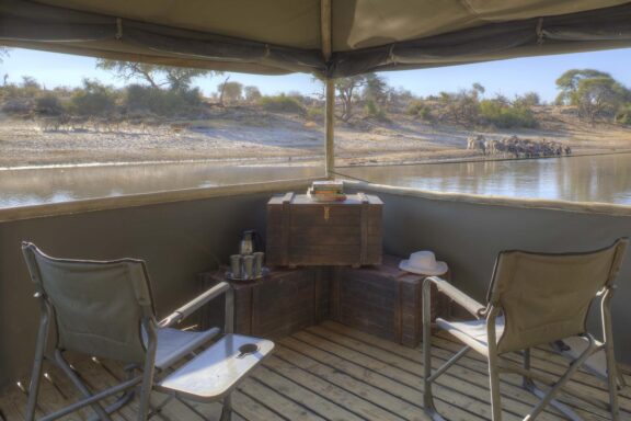 Meno a Kwena is an understated rustic lodge perched on a clifftop overlooking the Boteti River and offering a diverse range of activities. The Lodge exudes old world, classic safari style. Each of the 10 tents has an enviable view of the Boteti River allowing guests to watch Southern Africa’s largest zebra and wildebeest migration concentrates at the river during the dry season. Meals are cooked over the camp fire and down time spent in the pool or loungers.