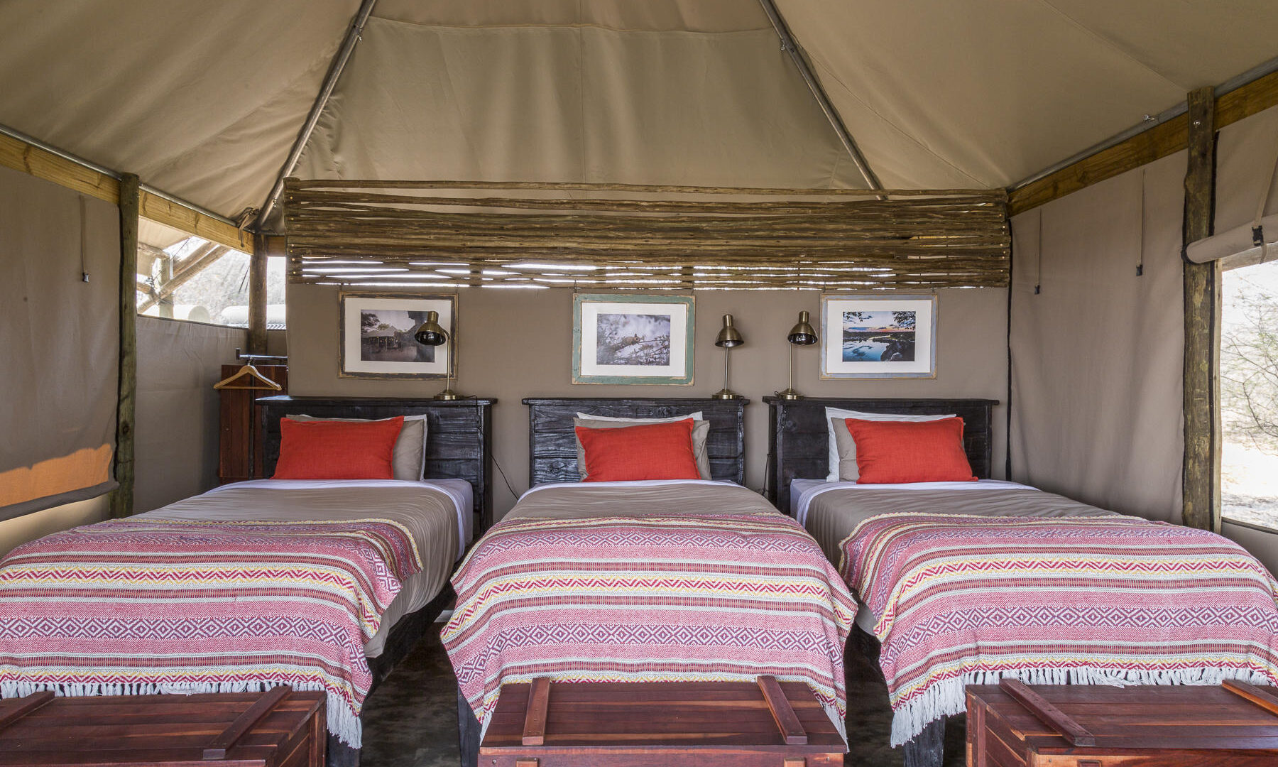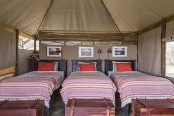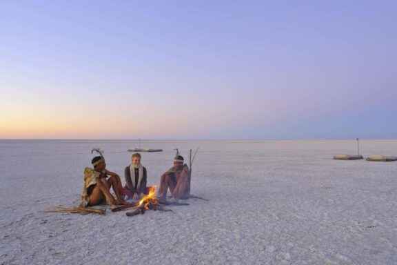 Guests can immerse themselves in the silence and solitude of the Makgadigadi salt pans with our sleep out (dry season only), watch the bustle of river-seeking herds from land or water, or oversee phenomenal wildlife sightings within the Park. The iconic local bushmen tribe bestow their knowledge of flora and fauna in a fascinating cultural exchange during walks from camp. With its easy access from Maun, this is a perfect camp for those on a self-drive itinerary, travelling with children or as part of a group.
