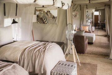 Each tent is nestled beneath a canopy of acacia trees and boast prime settings overlooking expansive wilderness.