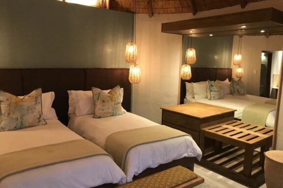 Besides the great game viewing, this small camp specializes in vegan safaris and yoga retreats. A vegan safari is a safari experience that is designed specifically for vegans. This means that all aspects of the safari, including the accommodations, activities, and food, are vegan-friendly. The goal of a vegan safari is to provide a safari experience that is in line with the vegan philosophy of not using animals for human purposes. The accommodation uses authentic, African materials that are entirely vegan. Toiletries are sourced from eco-friendly and local, vegan suppliers who use minimal plastic in their product packaging.