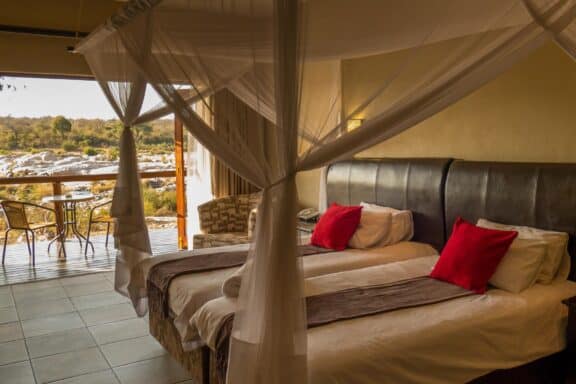 The accommodation is comprised of standard and luxury rooms, each of which offers a spacious air-conditioned haven of well-appointed comfort with a private veranda. As the African bush weaves its magic spell, your senses will awaken as never before.