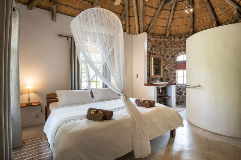 Nestled along the serene Okavango River, Mobola Island Lodge offers an escape in Namibia’s natural landscape, about 30 km west of Divundu.