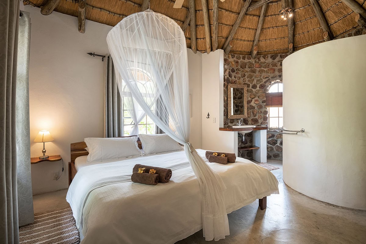Accommodation at Mobola Island Lodge caters to a range of preferences, featuring five bungalows with varying bed arrangements, including two four-bed bungalows with separate rooms, perfect for families or groups.