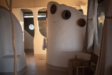 Following its conversion from farming to wildlife in the 80s, the eight-suite lodge was constructed by skilled Batswana craftspeople and artisans from its partner community, Khumaga Village, using locally sourced materials. These suites have been thoughtfully designed to maximise your view of wildlife, which come to drink at the waters edge below.
