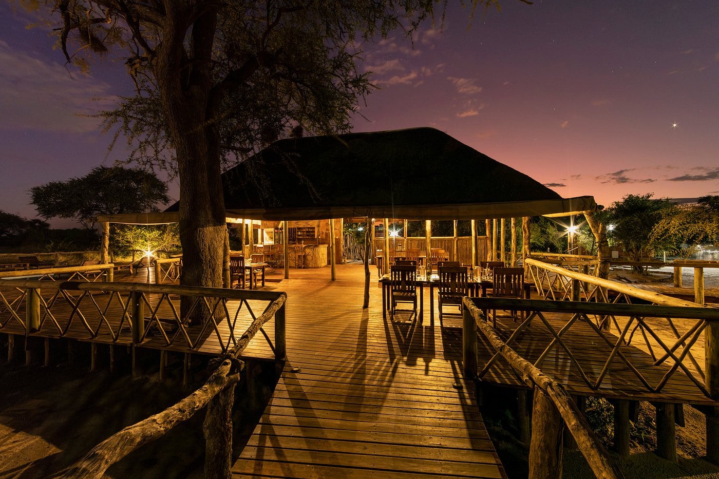 This beautiful safari camp has ten thoughtfully distributed tents facing a vast plain that attracts wildlife due to a permanent waterhole, providing a tranquil and immersive safari experience.
