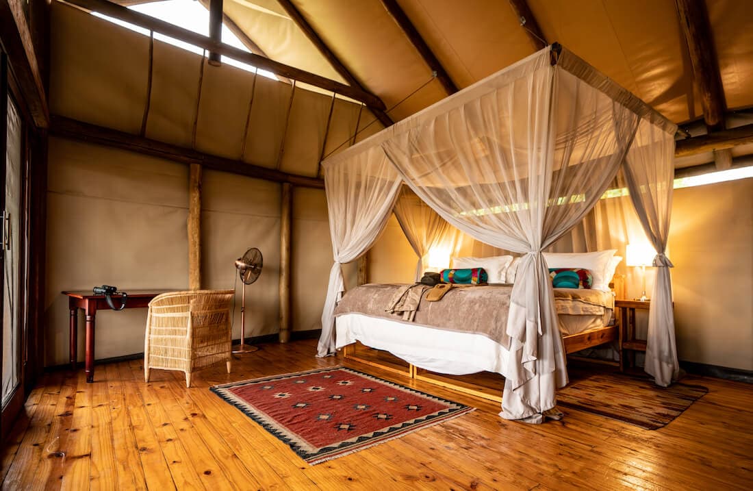 These territorial cats love it here so much, that the area boasts the third-highest density recorded anywhere in Africa. Mokolwane is a special little camp, big on adventure. And being the only camp for miles around, a great place to breathe in the stillness and solitude.