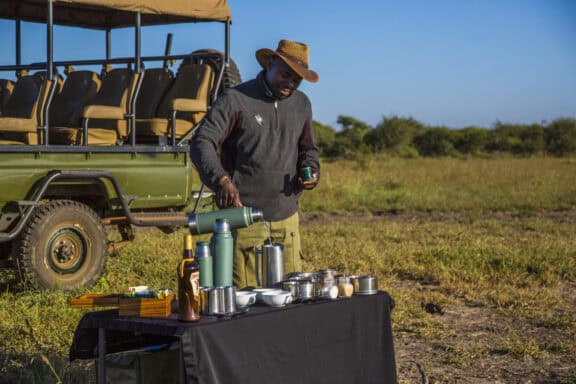 Your stay also includes all meals, soft drinks, local alcoholic beverages, laundry, two game drives per day, game reserve entrance fees and tourism levies, use of fitness center, sauna and steam room, wireless internet and transfers to and from the airstrip.