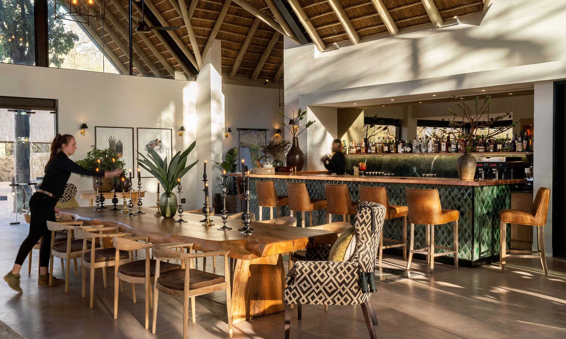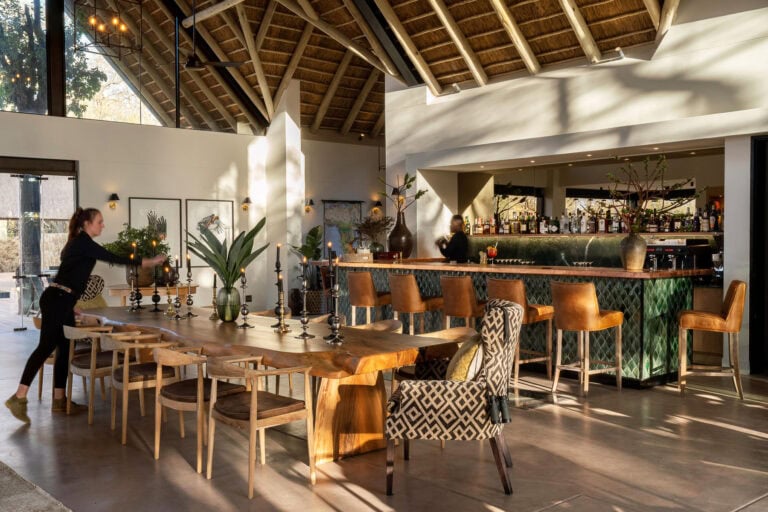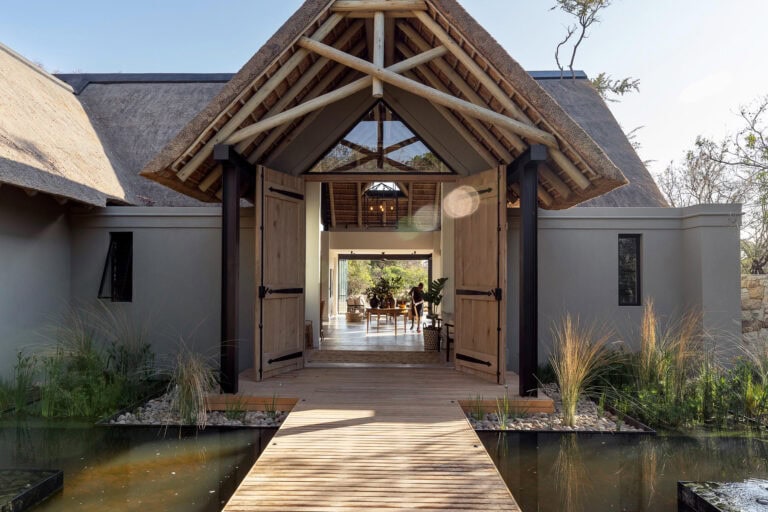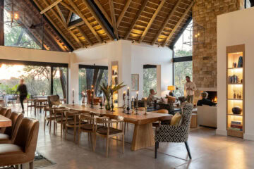 This is a lodge to be lived in, where the outside is invited in. Double volume vertical space, massive cathedral windows, and doors that open wide mean that you are part of the bush wherever you may be.
