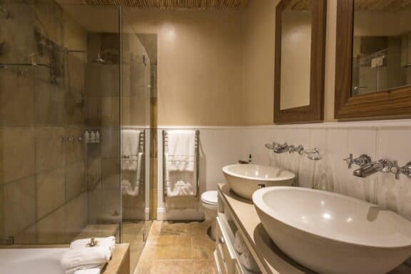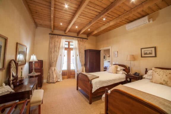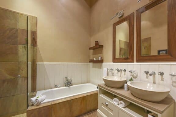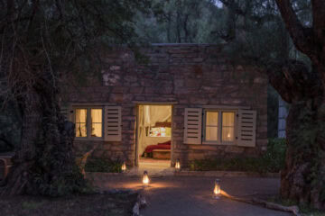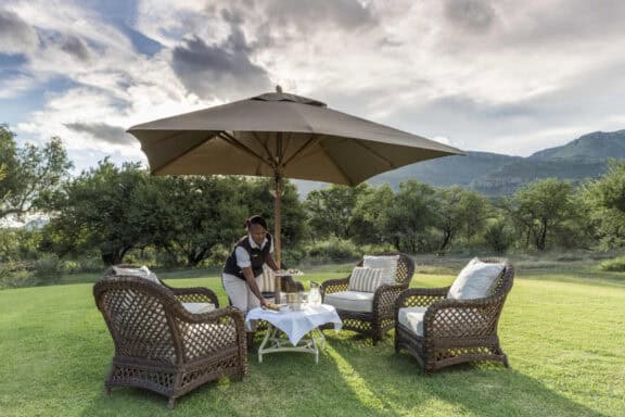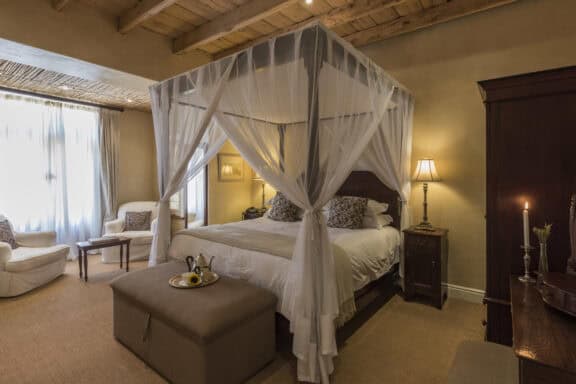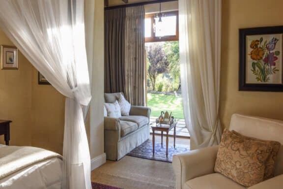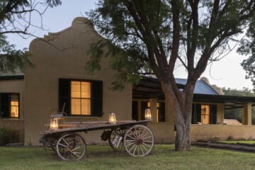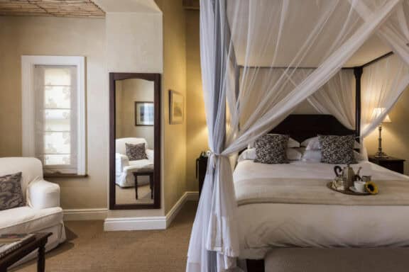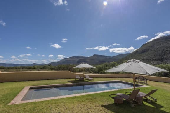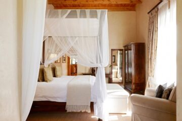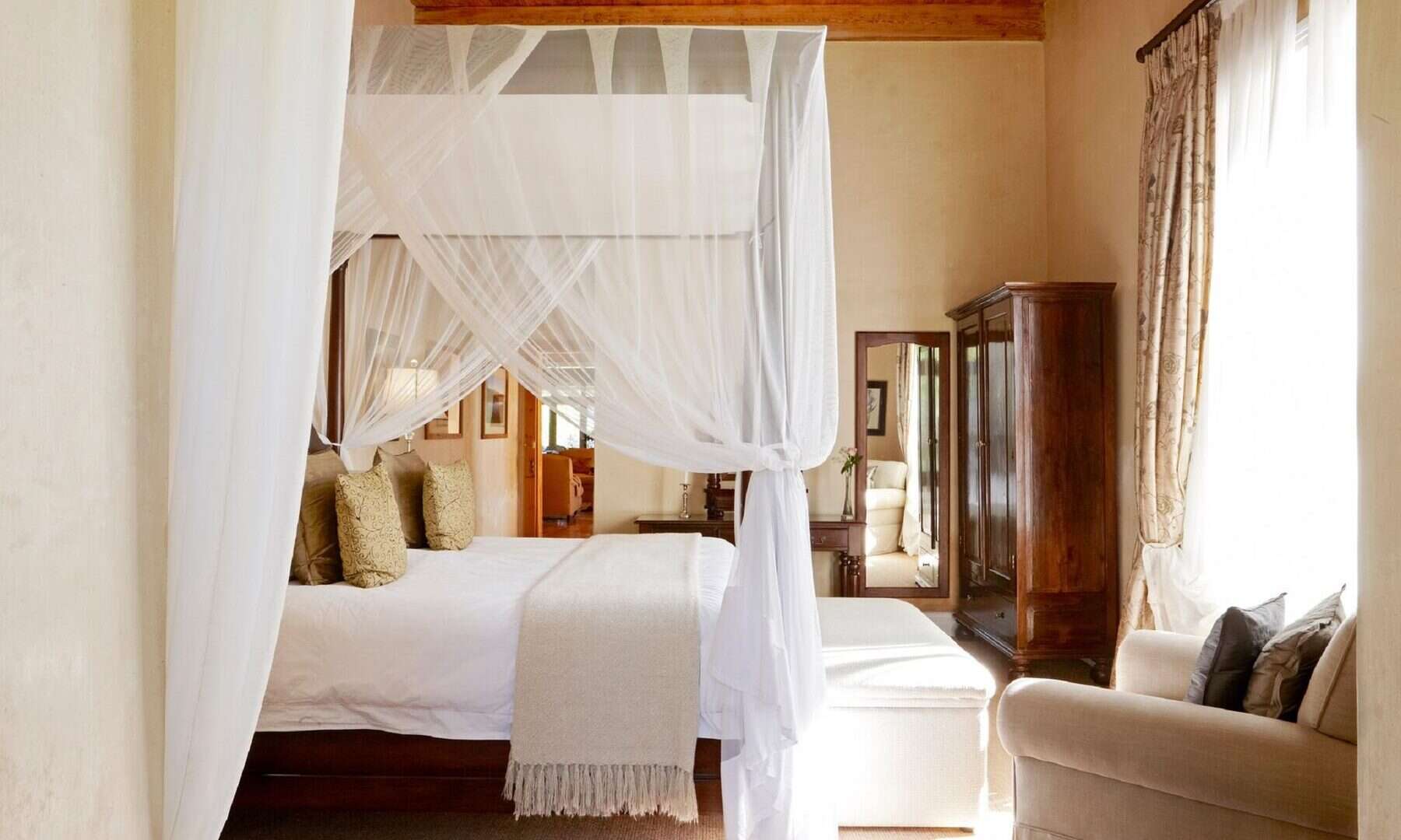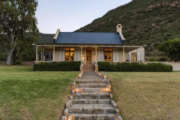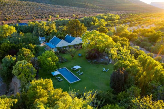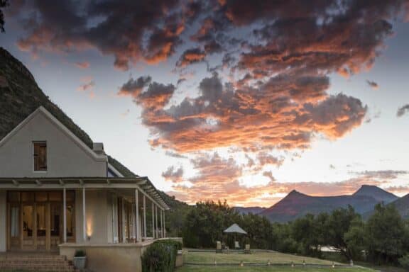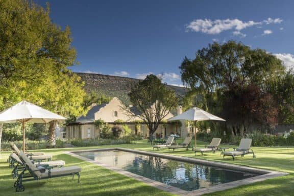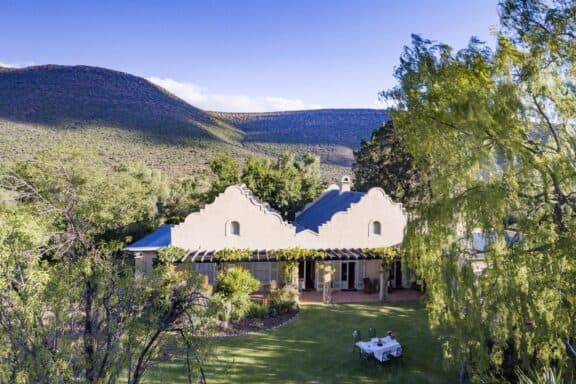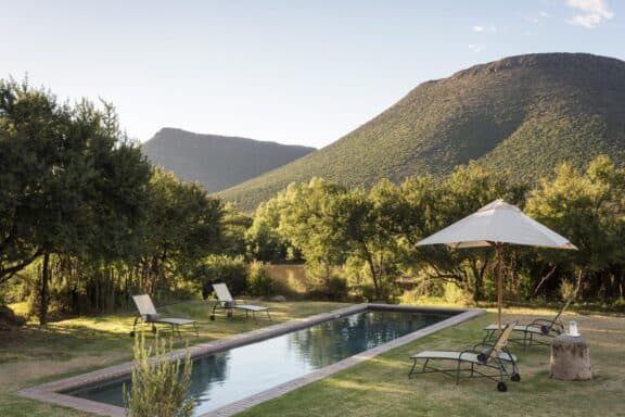 Accommodation is in three beautifully restored, gracious gabled manors, each with spacious gardens and swimming pools, and one with an additional secluded cottage. For those looking for something under canvas, two luxurious and privately located en-suite safari tents provide sweeping views over the reserve.