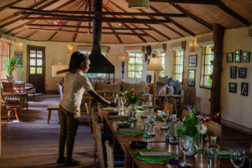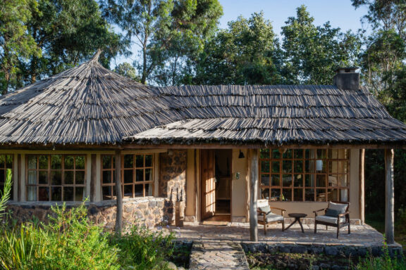 The beautiful hand-built bandas reflect the magic of the aesthetic traditions of the Bufimbira people. Each Banda has an en-suite luxury shower room, fireplace and private porch.