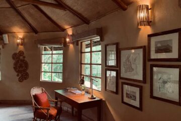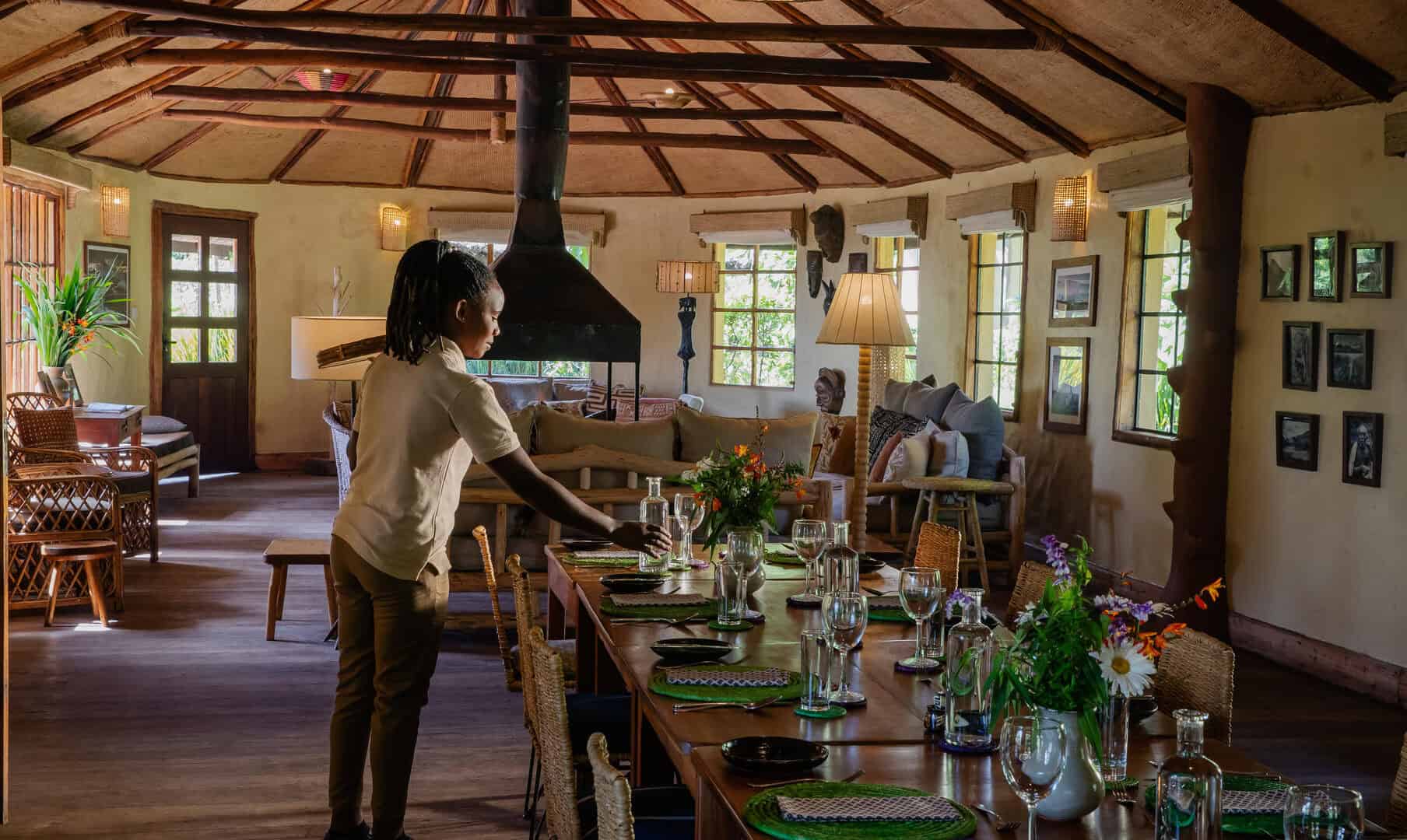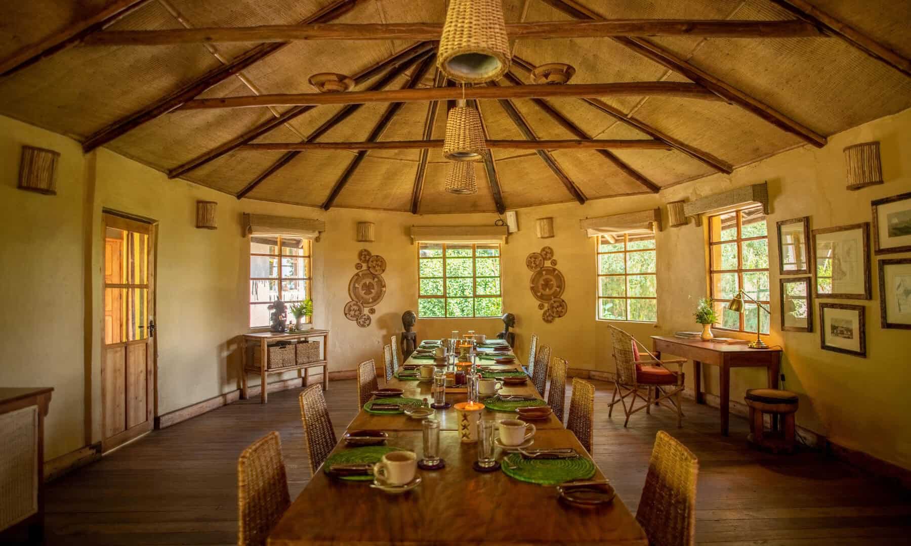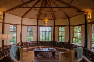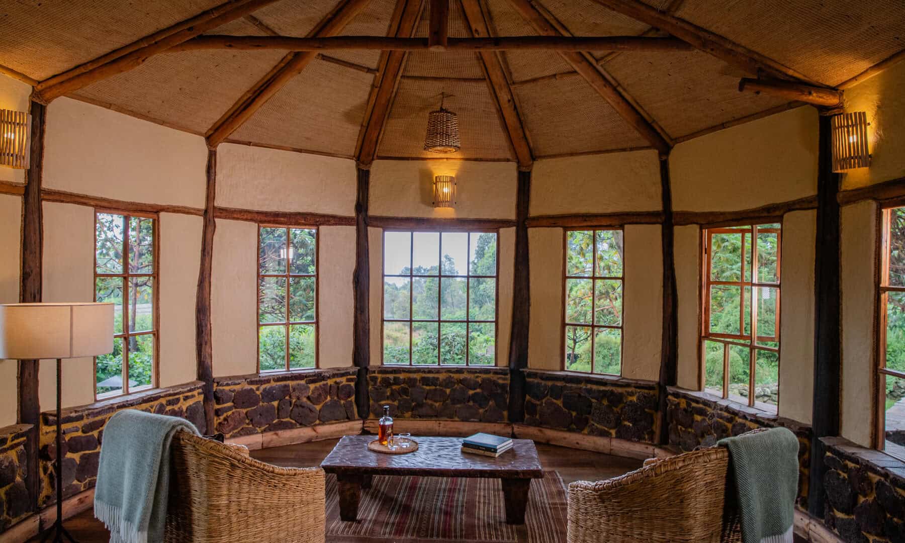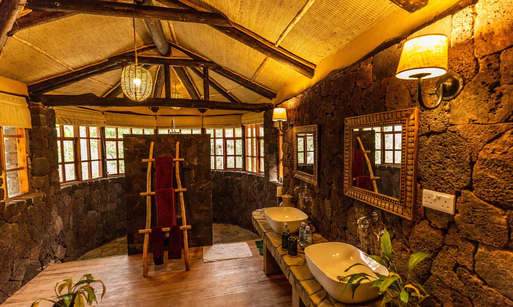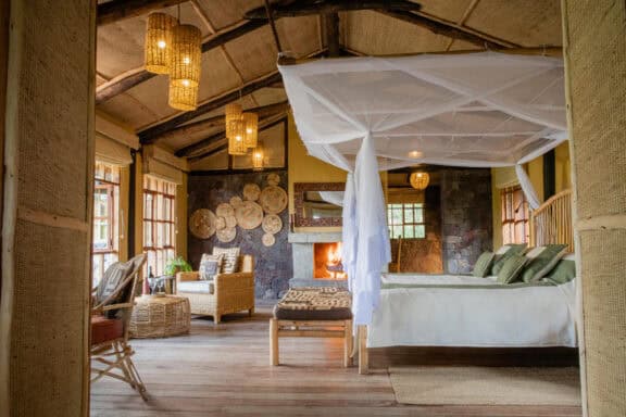 The beautiful hand-built bandas reflect the magic of the aesthetic traditions of the Bufimbira people. Each Banda has an en-suite luxury shower room, fireplace and private porch.