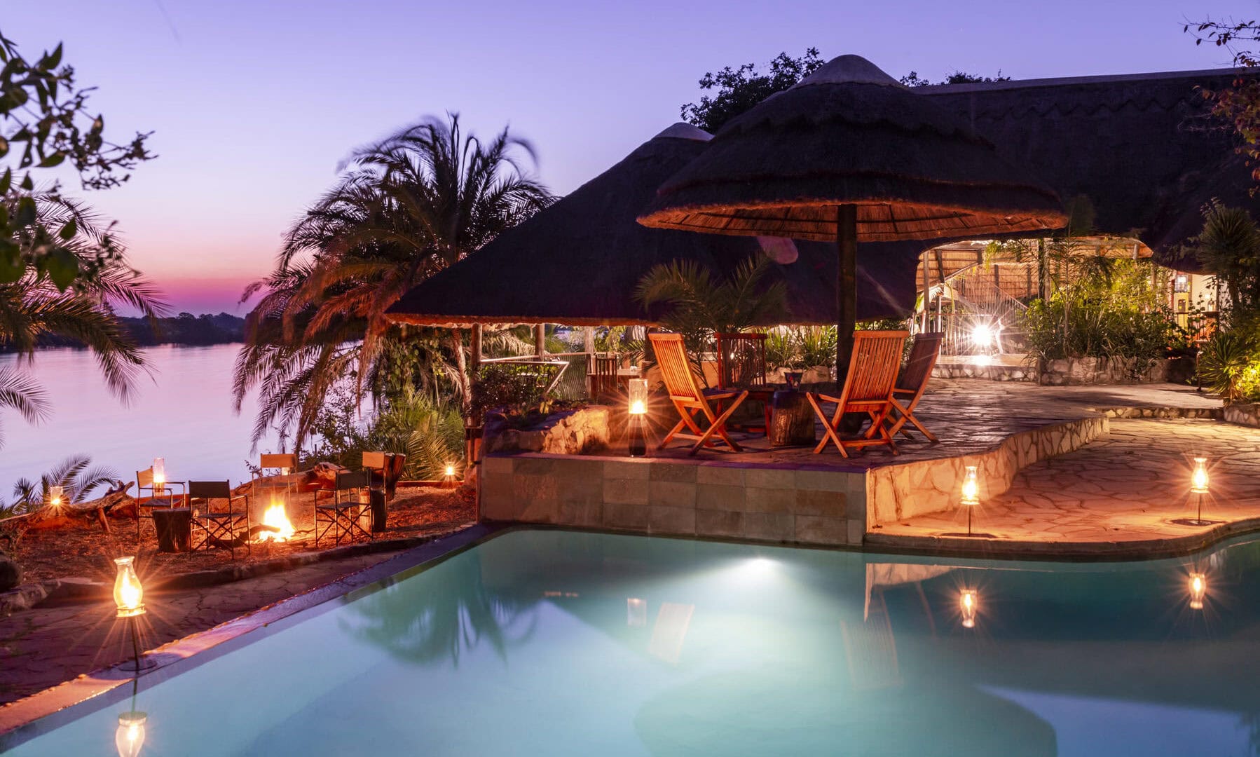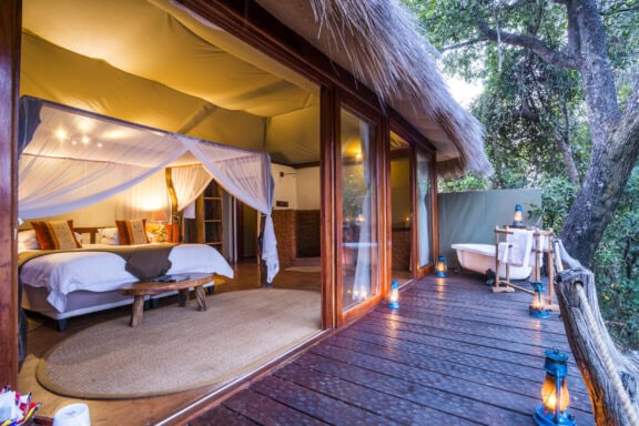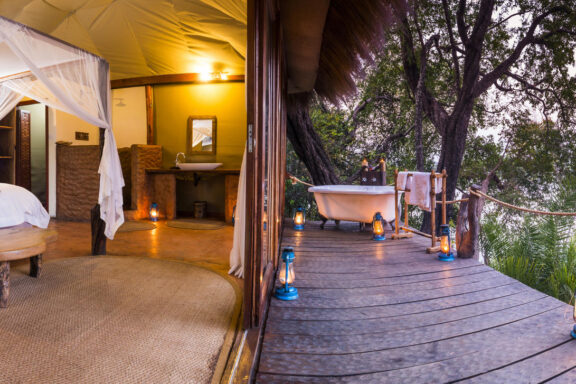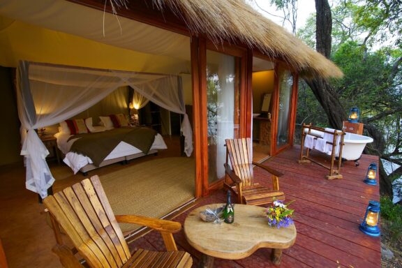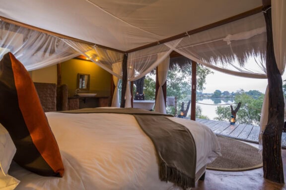 Activities consist of game drives in open-canopy vehicles, boat and fishing trips, along with walking safaris where you are likely to see elephant, lion, leopard, cheetah, puku, impala, hippo, many other animals and an incredible array of birds. Back at the lodge our delicious food, friendly staff and comfortable accommodation will make your stay an unforgettable one. Our accommodation consists of a luxurious Riverside Villa, comfortable en-suite chalets and four luxury safari tents, all on stilts with a deck overlooking the river, with a private outdoor bathtub which makes for extraordinary star gazing.