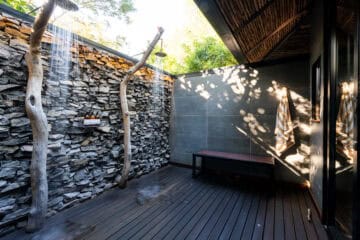 You can embrace the slow pace of river life by unwinding at the on-site spa or cooling off in your private plunge pool. Culinary experiences are a highlight at Mukwa Lodge, where meals are served on sweeping decks beneath towering Jackalberry trees, accompanied by the gentle sounds of nature.