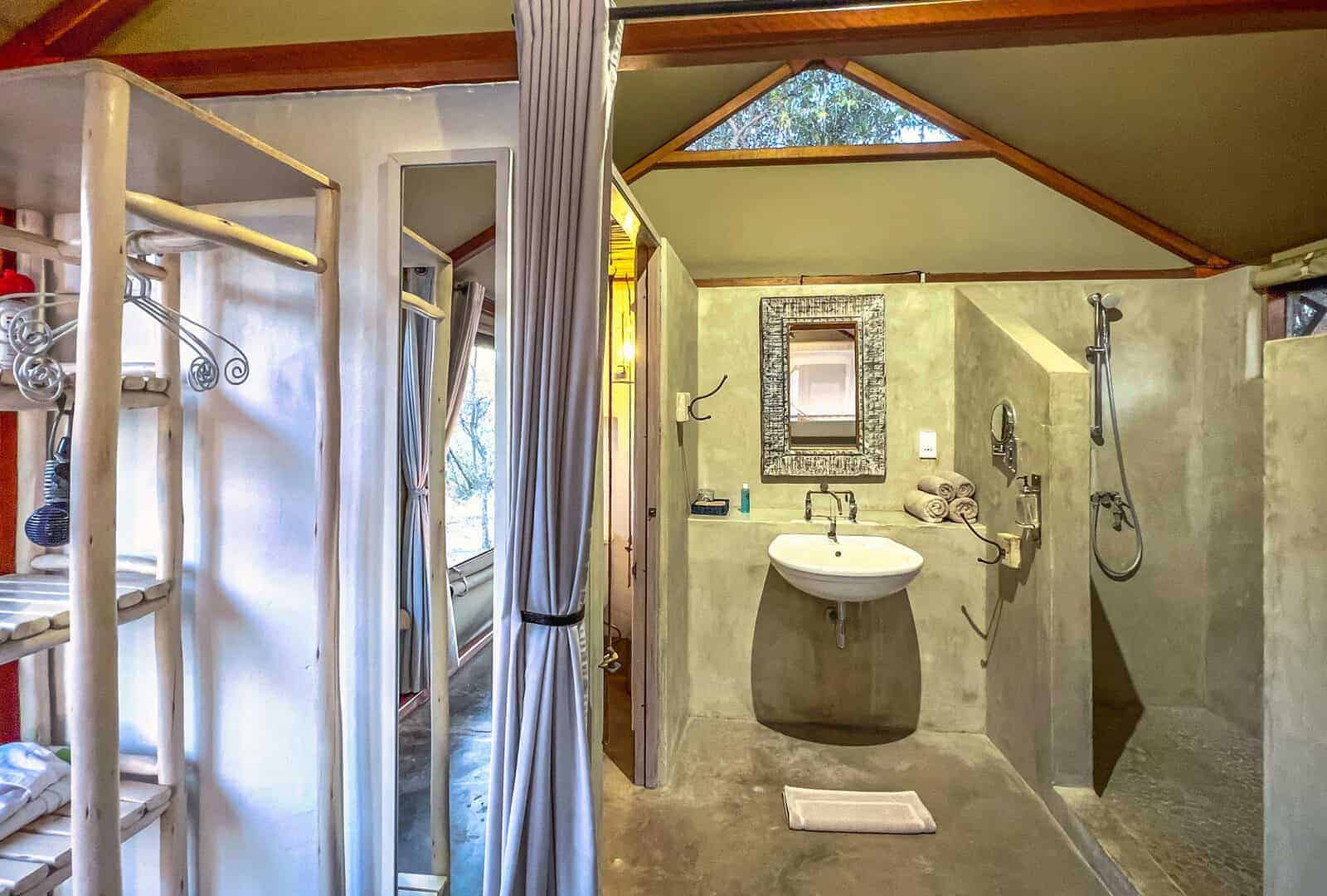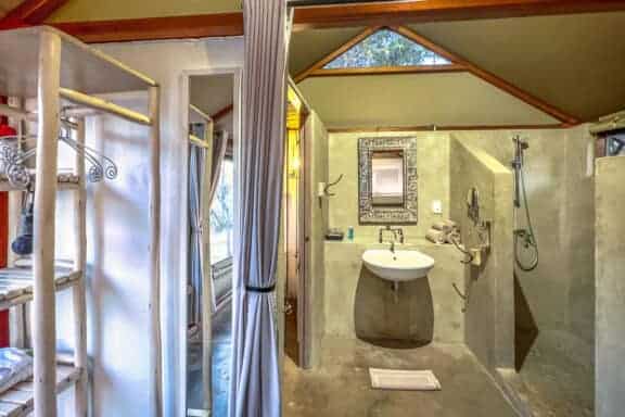 The 16 custom made en-suite tents are built from a combination of canvas, wood and local limestone. With their own 8 square metre private verandah and roof to floor windows, theses rooms are spacious and airy. Each large bathroom has an oversized window and shower looking into the surrounding bush. The brushed cement floors and lime stone walls keep the rooms cool from the afternoon sun. Four of these tents are ideally suited for families with small children as they have a